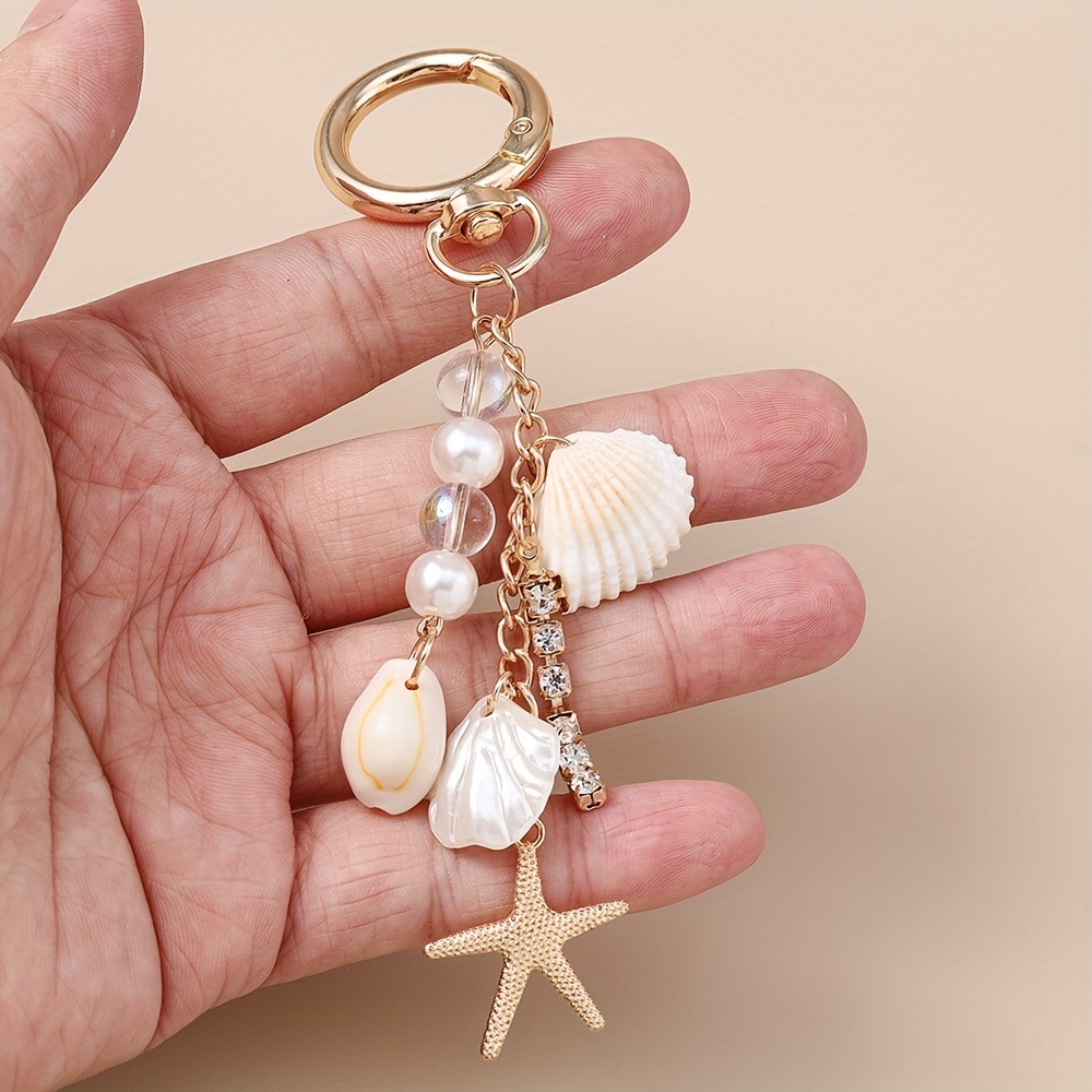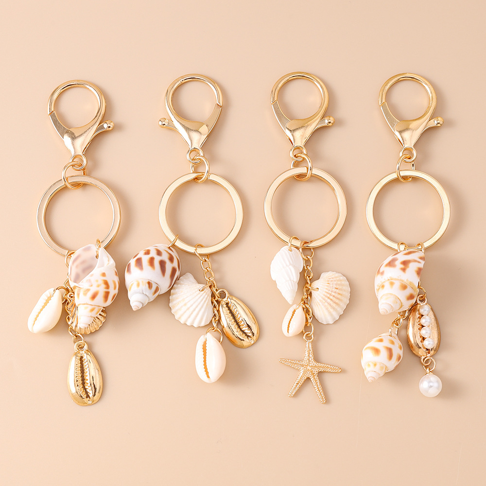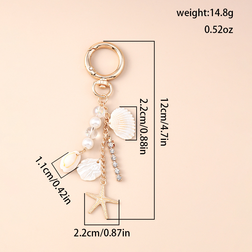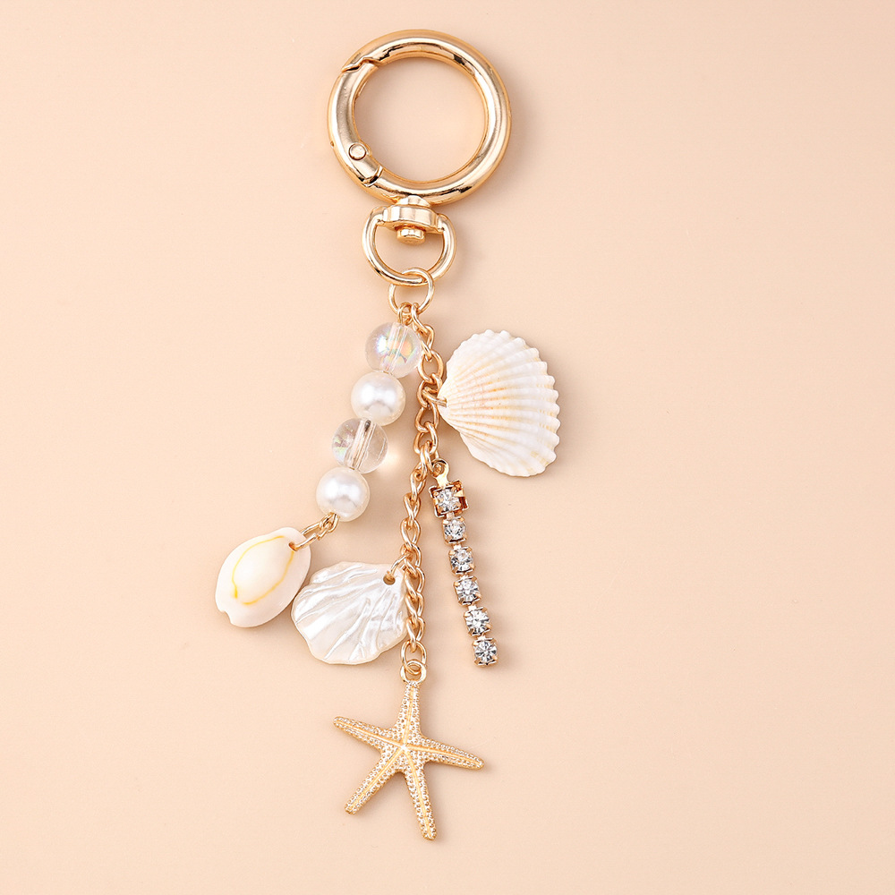 ヨーロッパとアメリカのクロスボーダージュエリー新しいファッションシェルフィッシュテールヒトデキーホルダーパールシェルラブキーホルダーペンダント