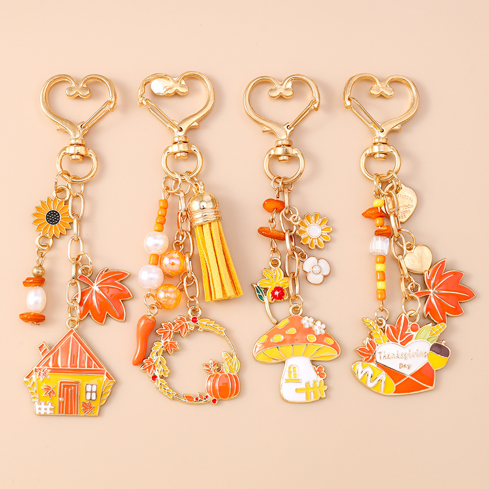 新款热销圆环南瓜蘑菇钥匙扣麦穗信封屋子钥匙环串珠花朵包包挂件