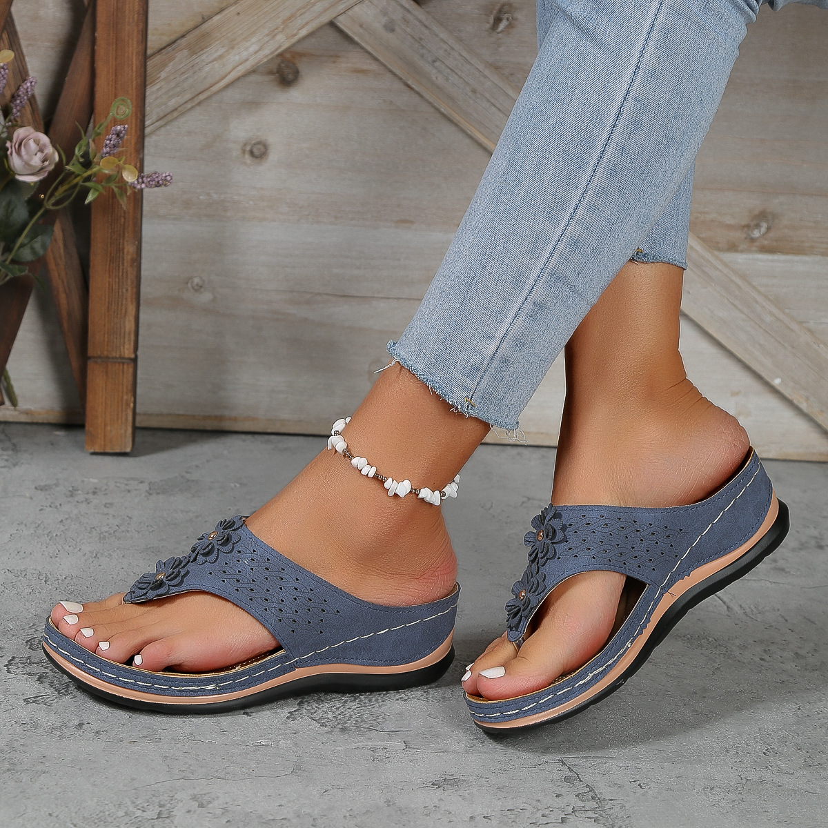 2022年夏 レトロカジュアル 花柄 ハイヒール ワンライン レディース ウェッジサンダル 通気性 足に優しい 快適 欧米風