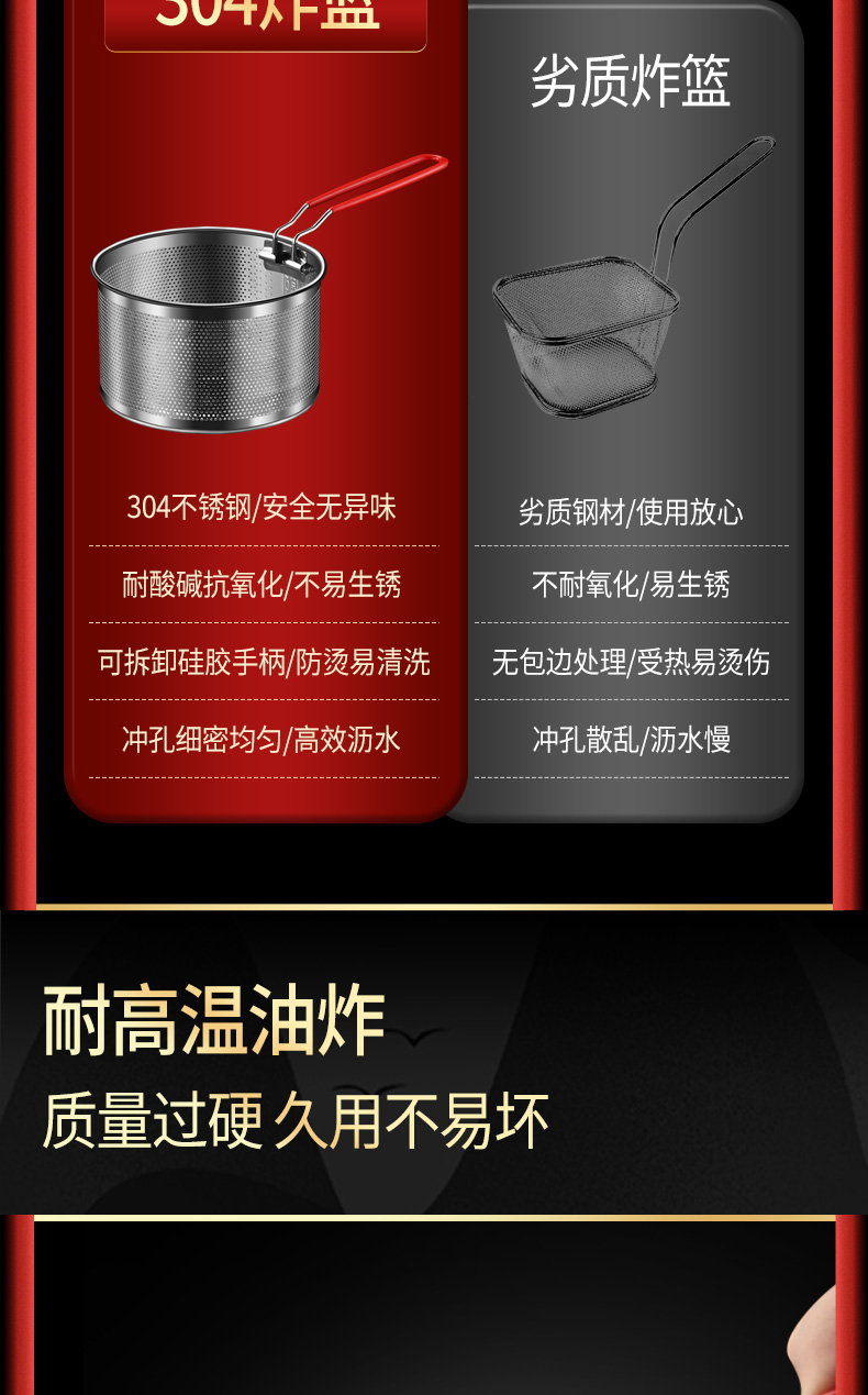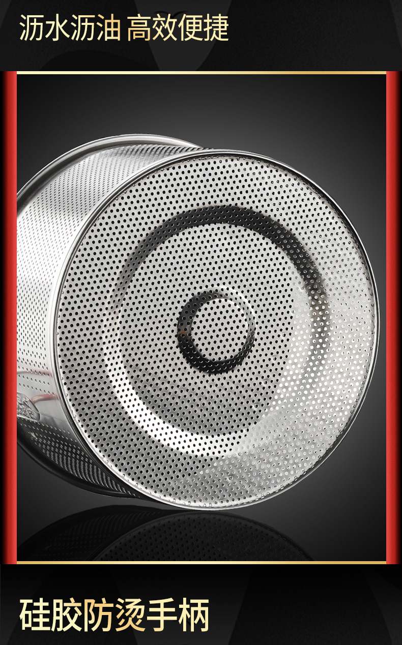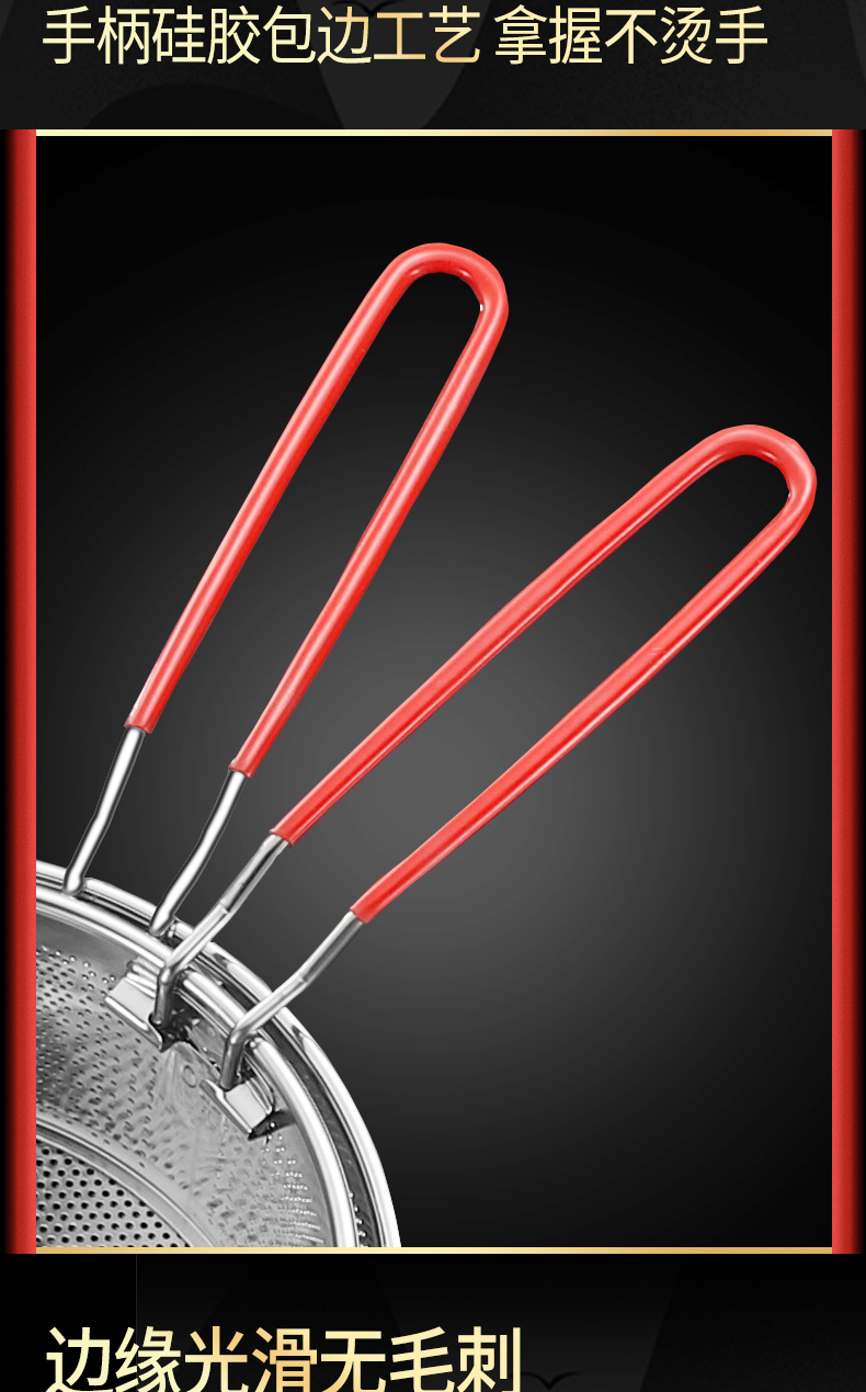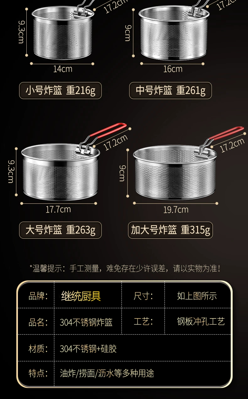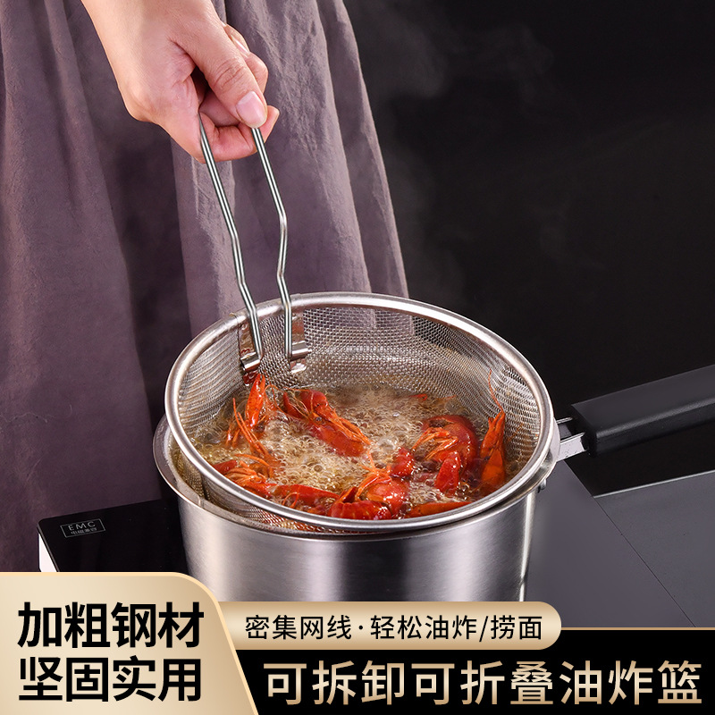 304不锈钢冲孔炸篮硅胶防烫可拆卸滤网麻辣烫商用捞篱家用油炸筐