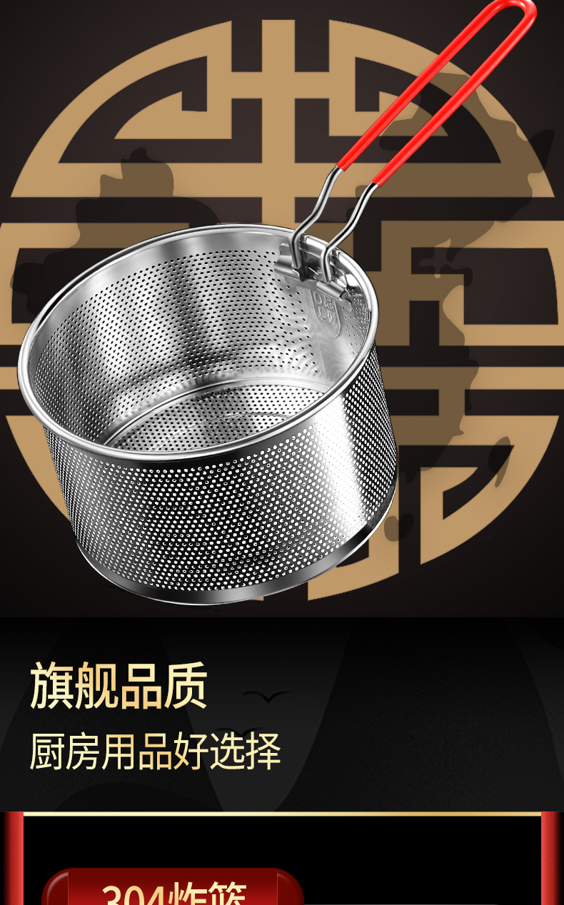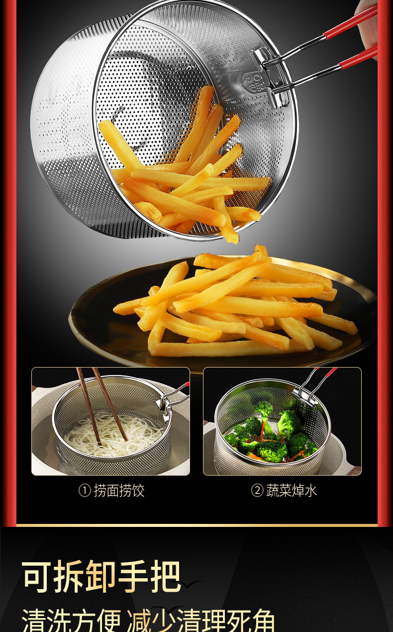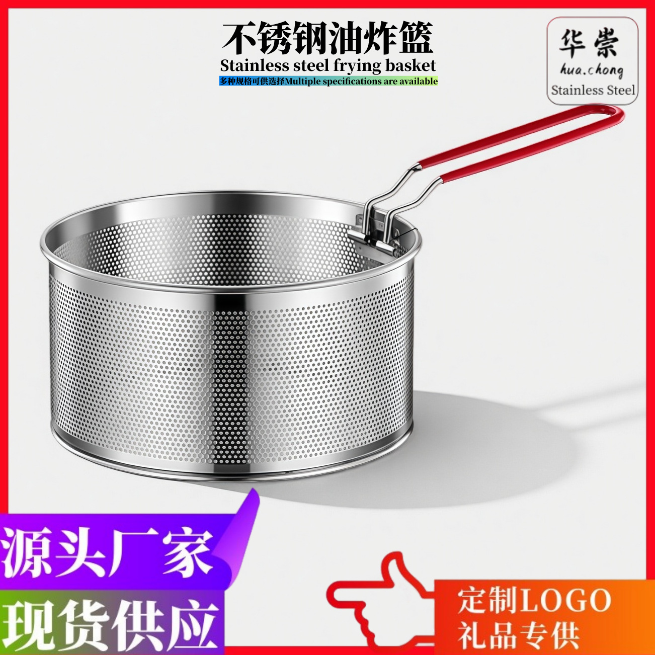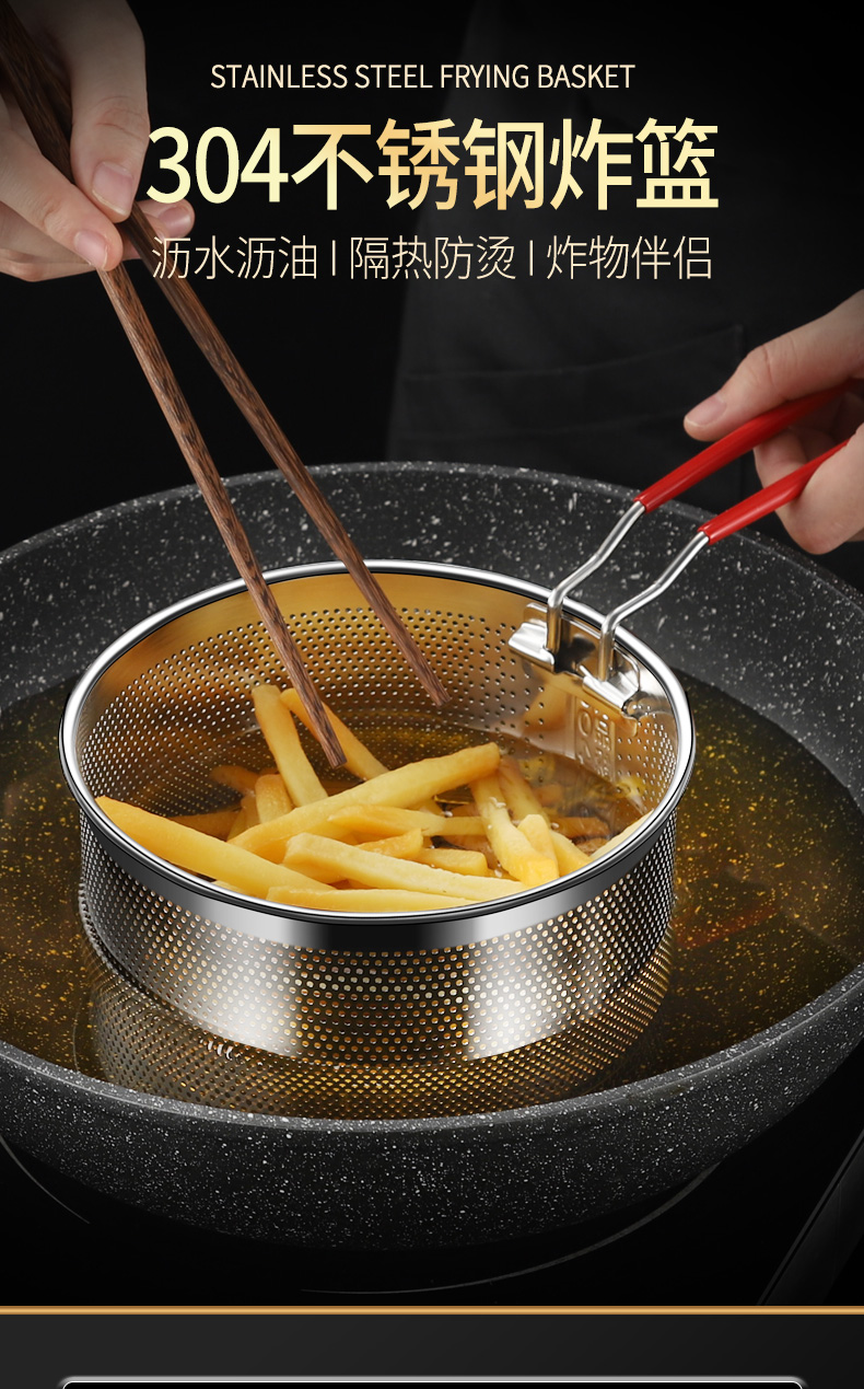 跨境不锈钢炸篮商用多用油炸篮家用捞面漏网勺麻辣烫炸薯条过滤篮