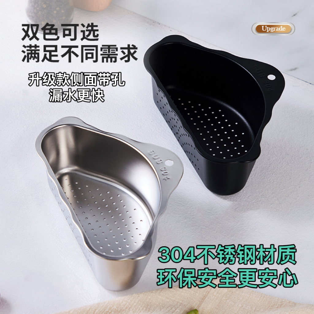 フィルター野菜洗いキッチンシンク穴あき三角吊り下げ水滴なし収納ラックバスケット排水バスケット 304 ステンレス鋼