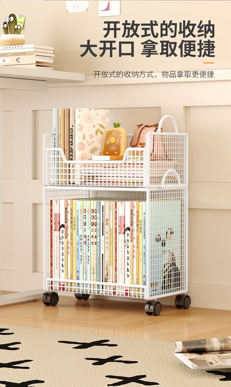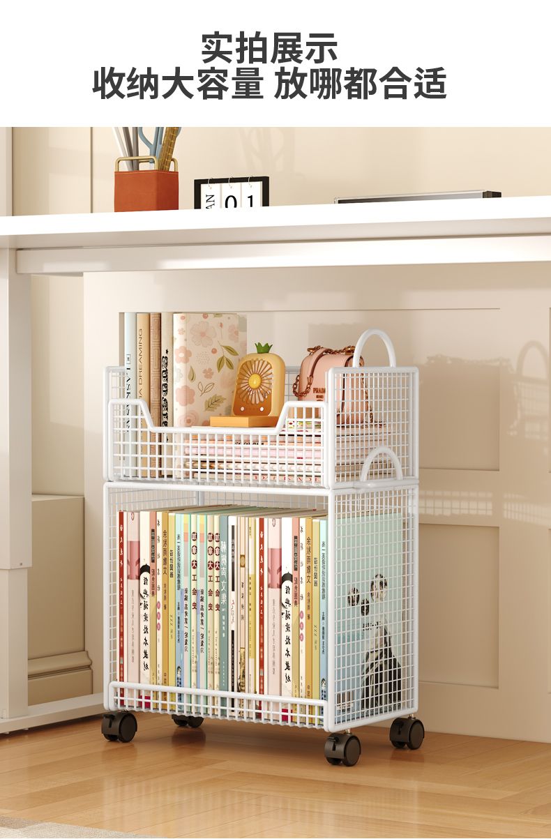 学生用の取り外し可能なサイド収納ラック、デスク、スクールバッグ、テーブル下のホイール、床置き収納、デスク用の小さな本棚