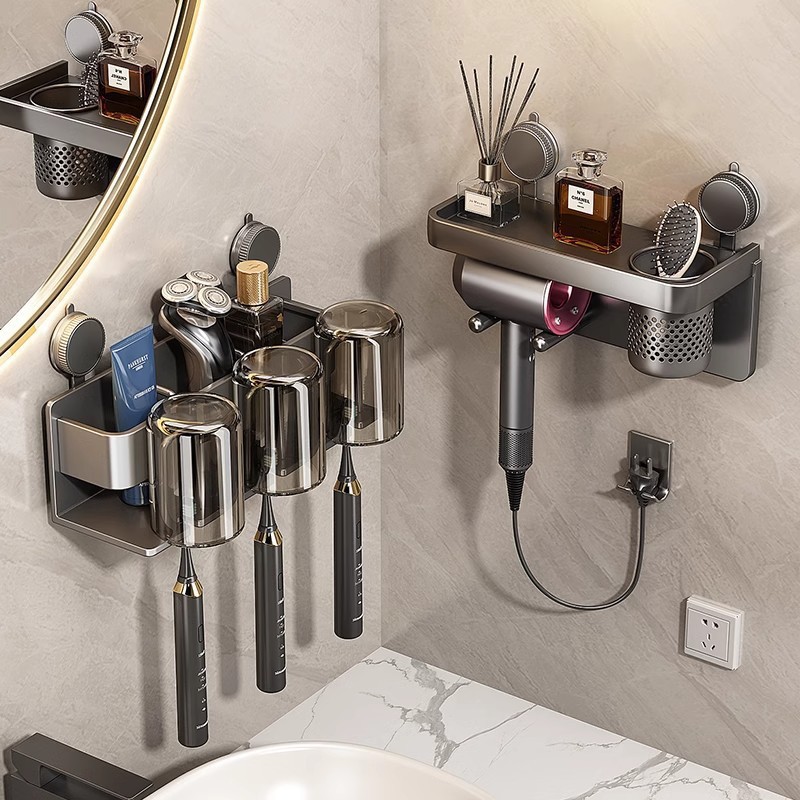 壁掛け浴室パンチングガングレーシェルフマウスブラッシングカップ収納歯ブラシ収納ラック電動歯ブラシ