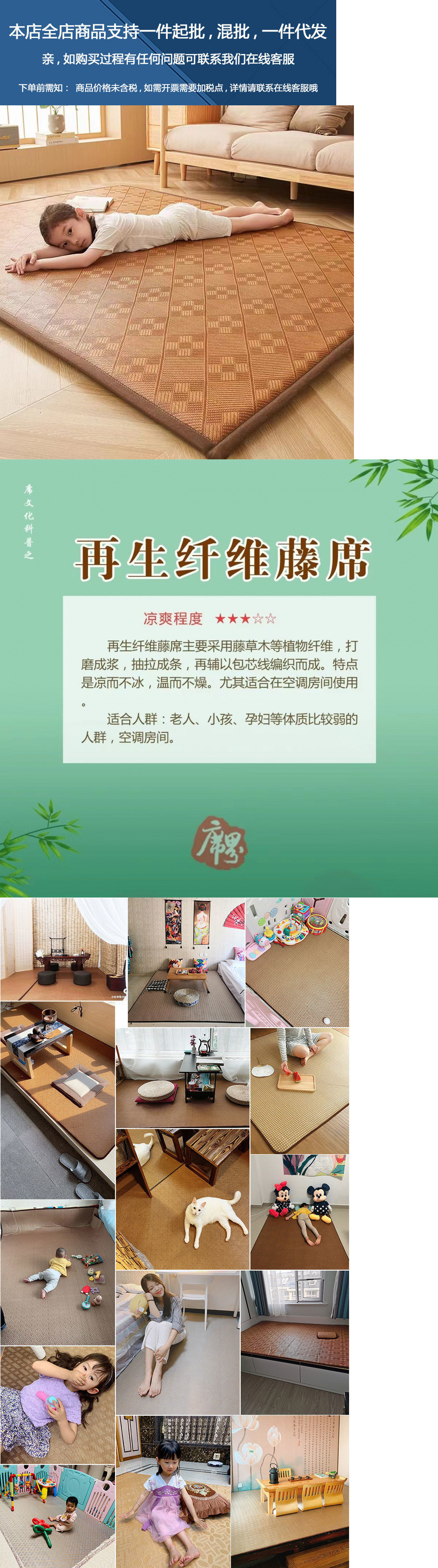 日式藤席地垫加厚凉席客厅地毯阳台床边榻榻米垫子爬爬垫打地铺厂