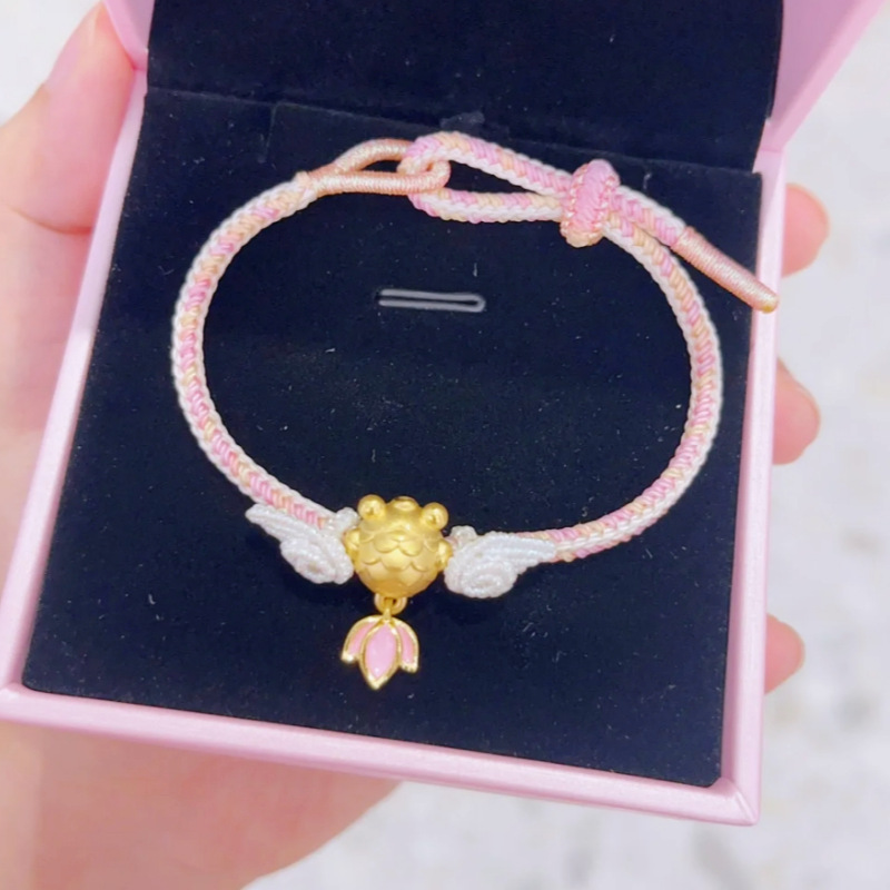999 純金シルバーバッジジュエリー蝶結び祝福袋転送ビーズ DIY ハンドロープアクセサリー