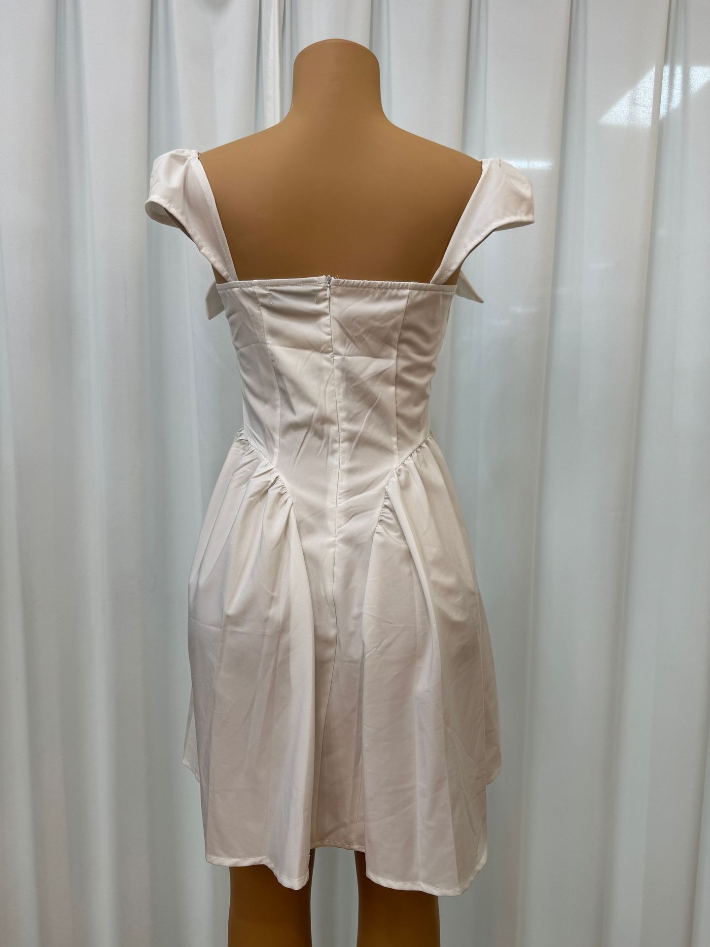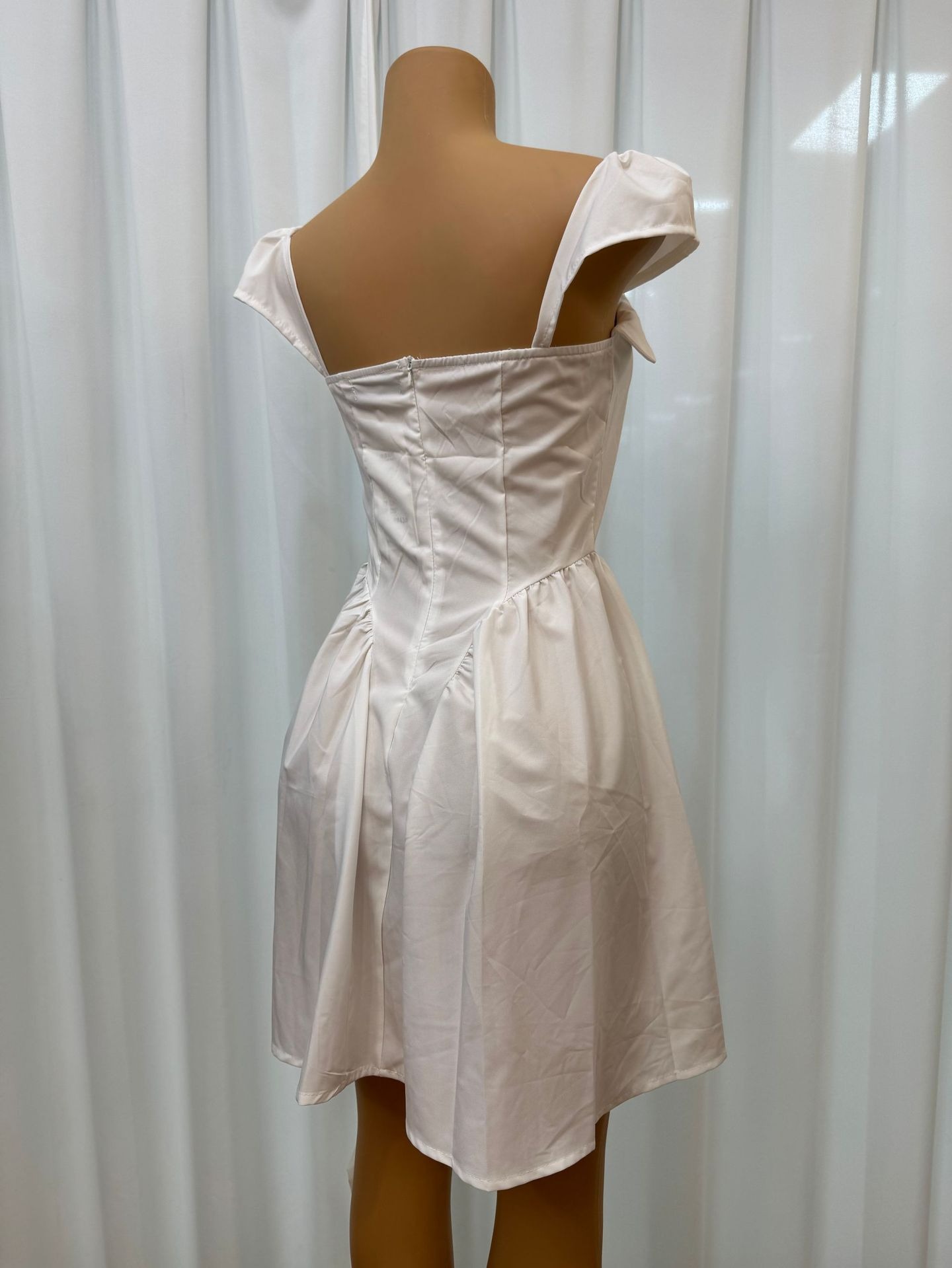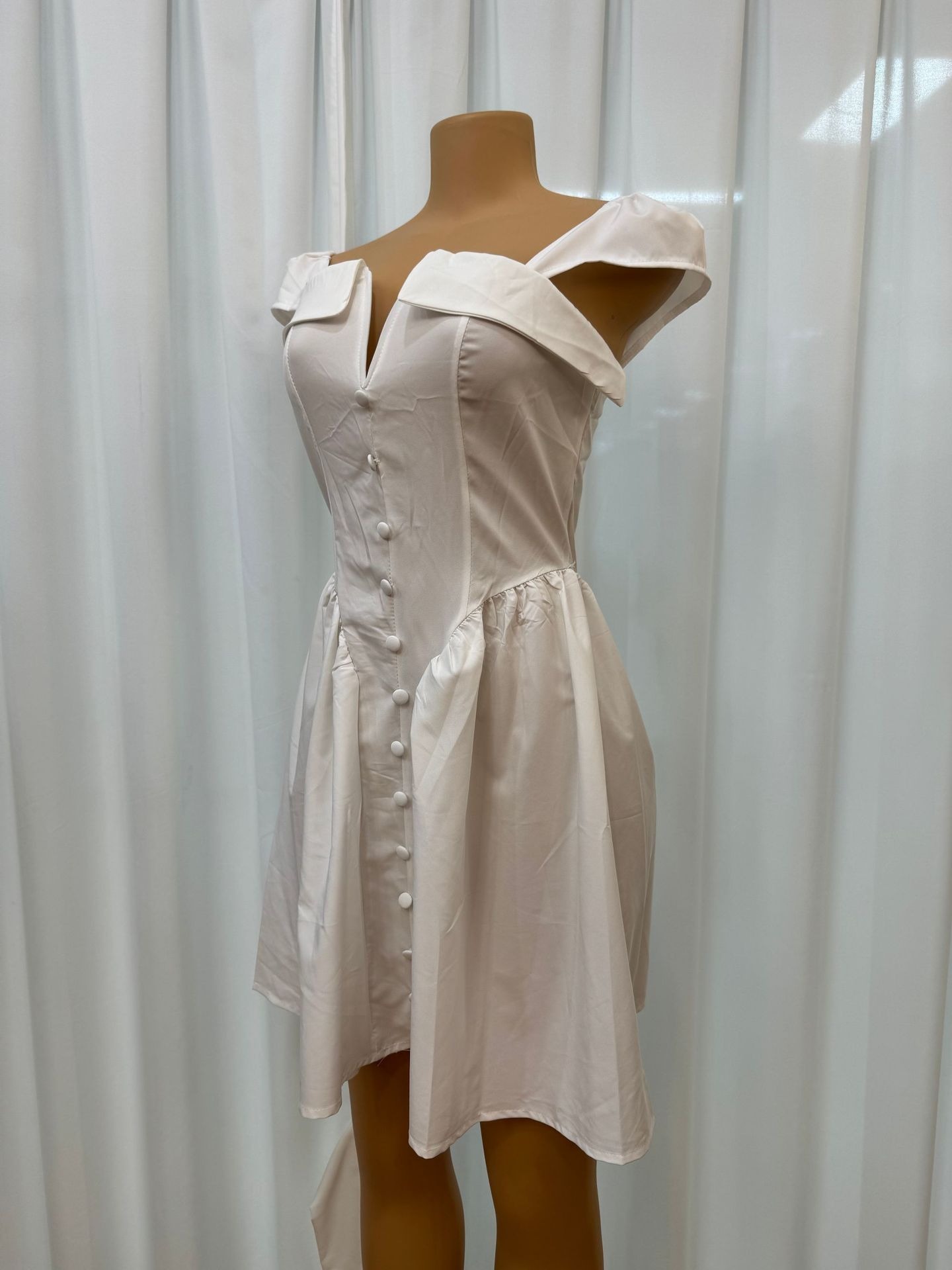 外国貿易の爆発的な気質vネックの白いa字のスカートの高腰の欧米風はやせているセクシーなワンピースの快適な通気性のスカートを現します。