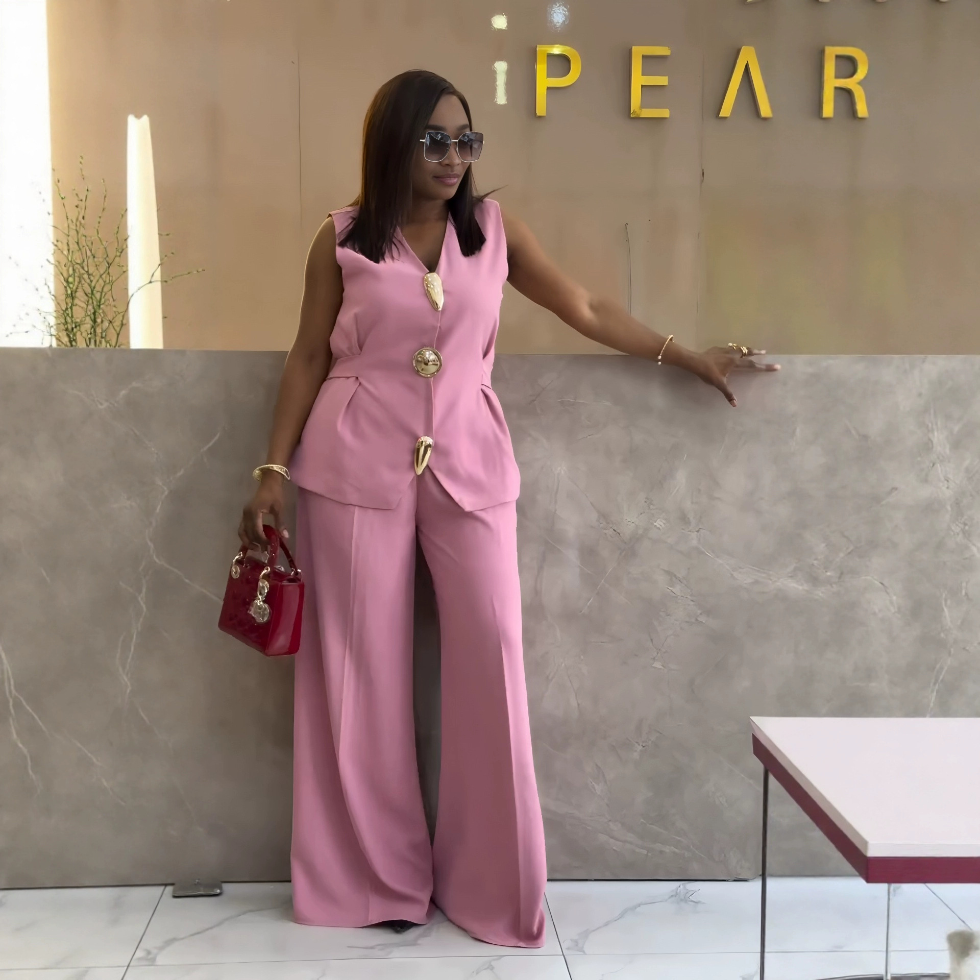 欧美跨境女装2026非洲新款休闲通勤长裤系带无袖马甲背心两件套