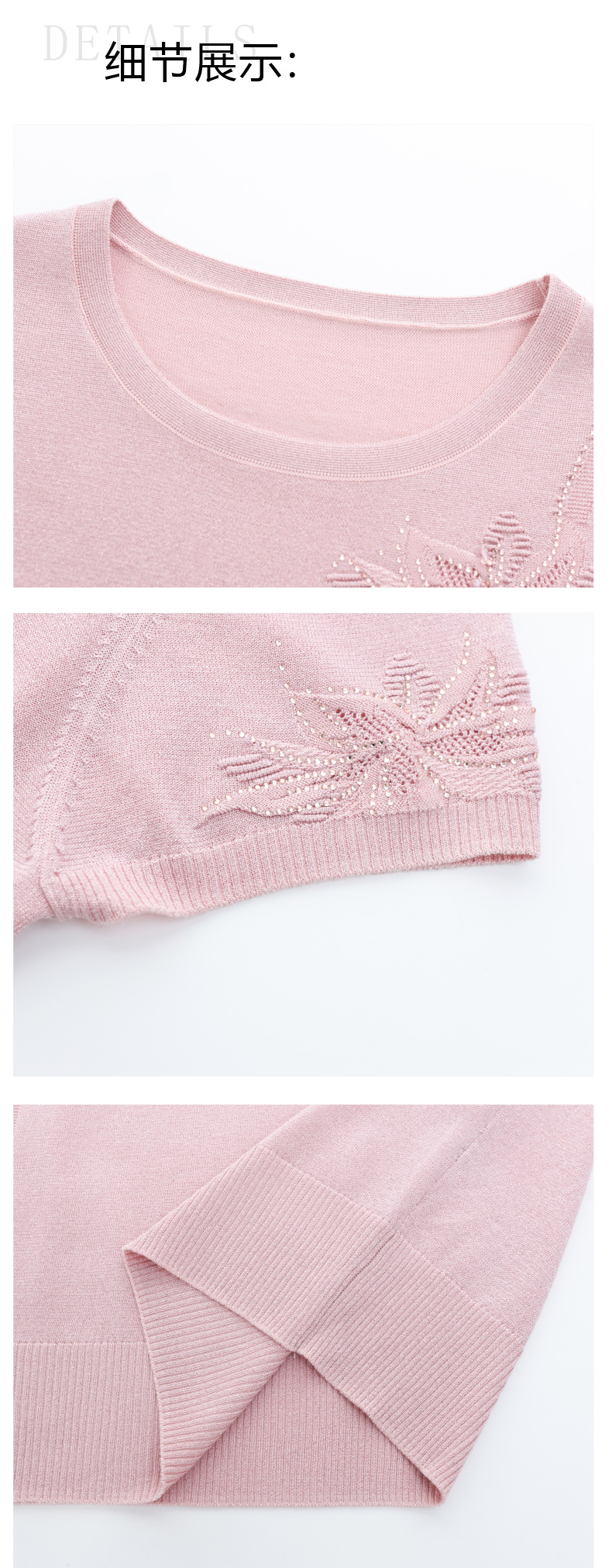 お母さんの夏服の気質の丸首のシンプルなファッションの半袖のニットのニットの中高年の夏の洋風は年齢の純色の上着を減らします。