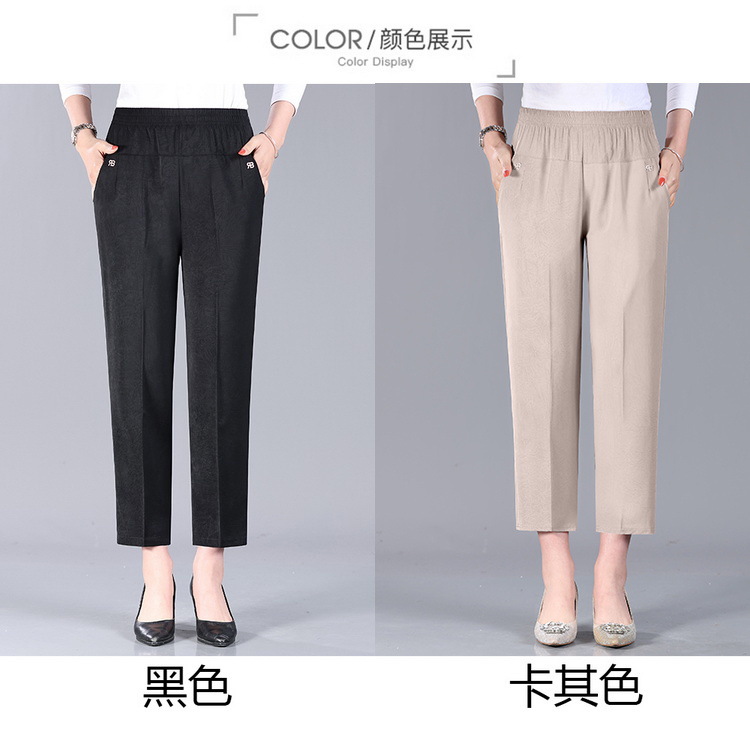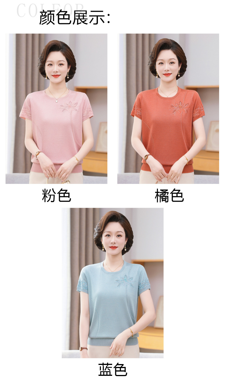お母さんの夏服の襟の上着の氷糸の半袖のtシャツの2025新型の中高年の婦人服の百合の薄いニットのシャツ