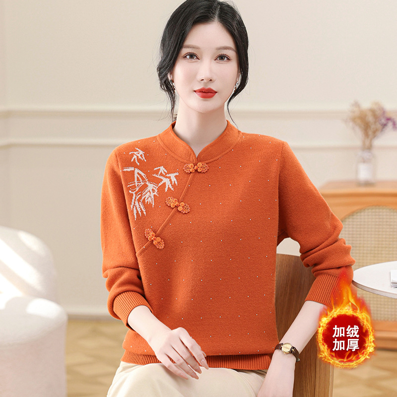若いお母さんの冬の服の新型の半高襟のベルベットの保温のセーターの中年の女性の秋冬のニットの底のシャツの上着
