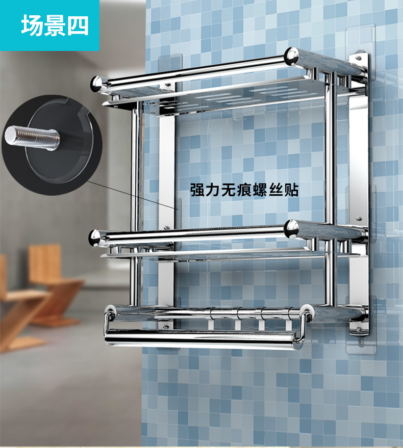 強力な粘着フックの棚にパッチを貼り付けます。穴を開けないでください。石鹸ケースの透明な無痕部品の壁に台所を掛けます。