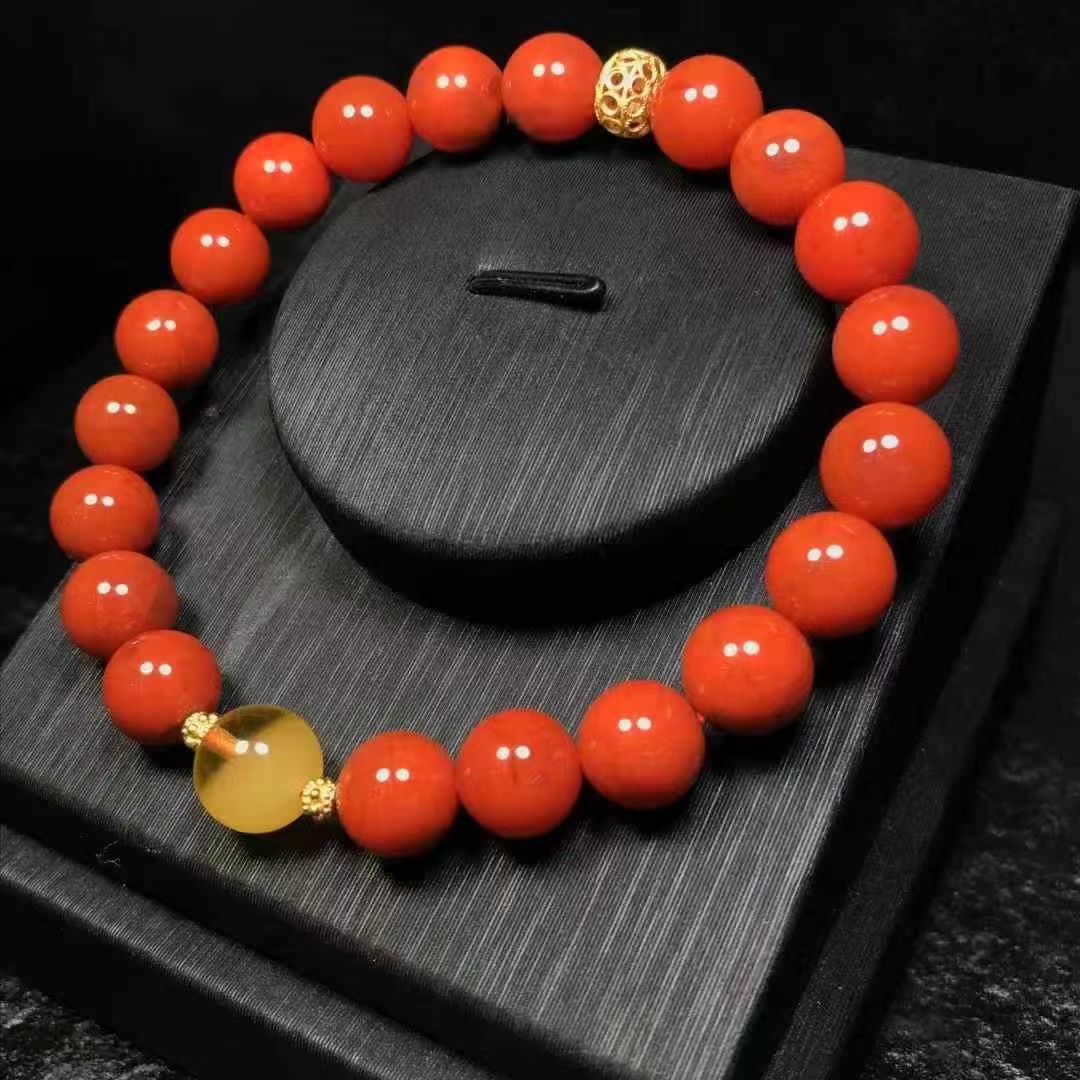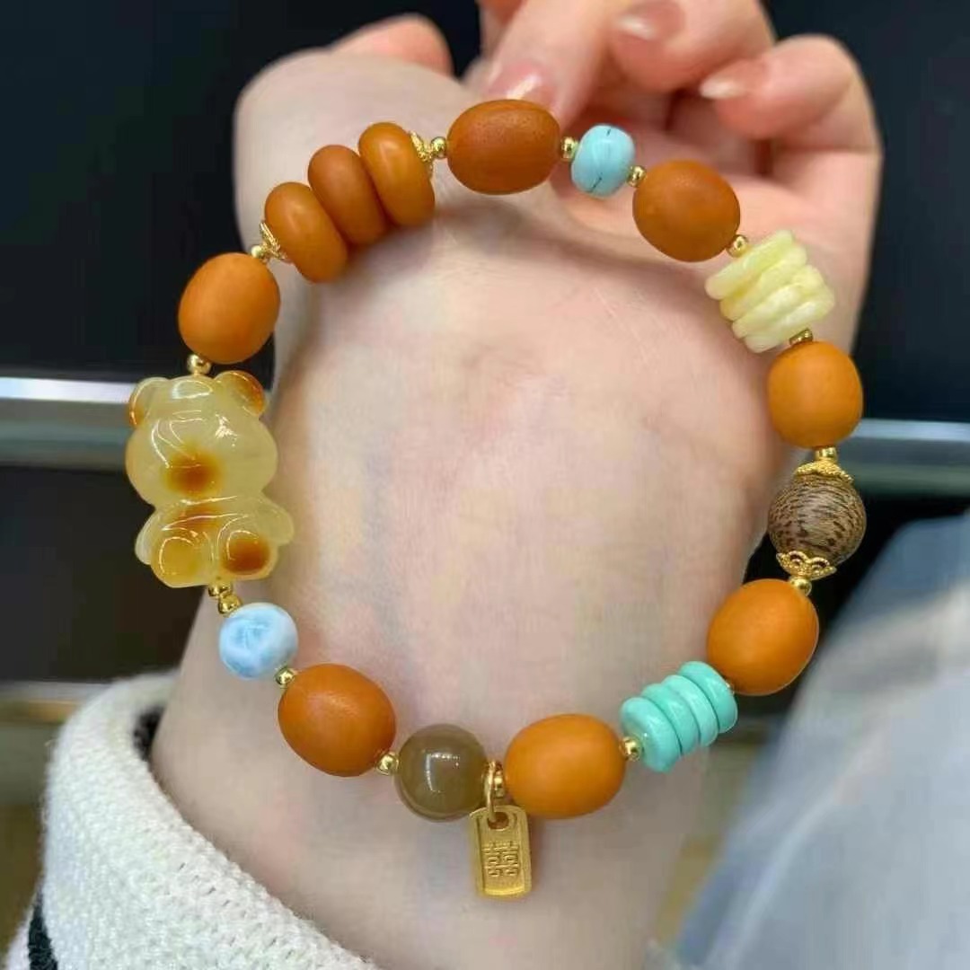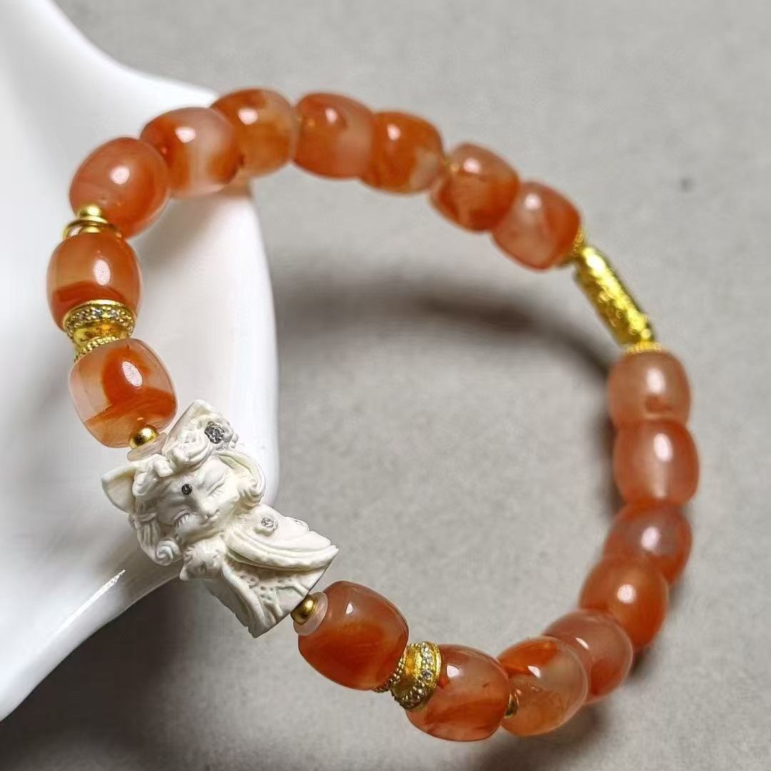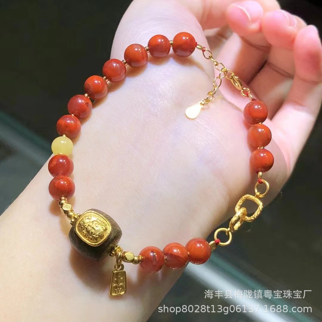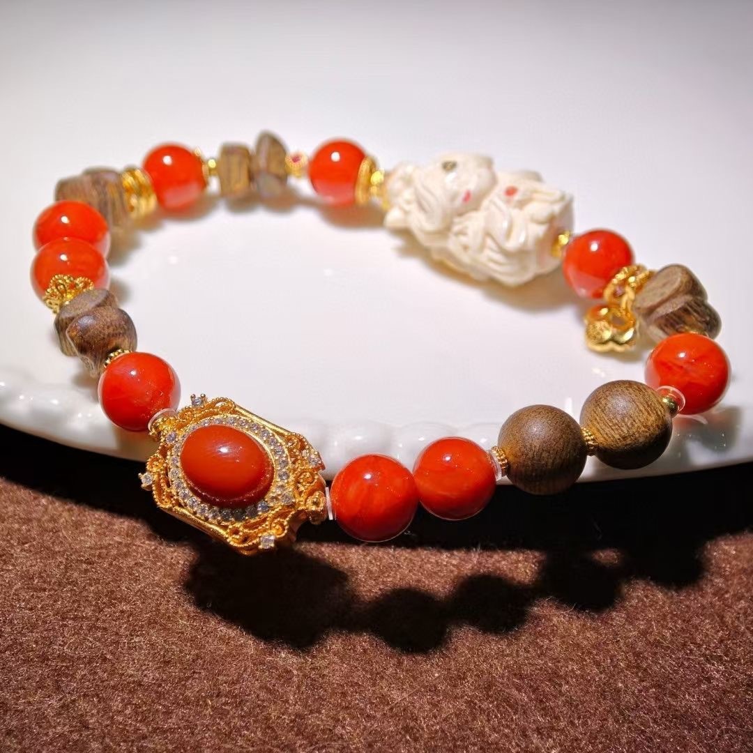 天然南紅ブレスレット、天然マンモス歯、シルバー、古代金、西南紅沈香ブレスレット