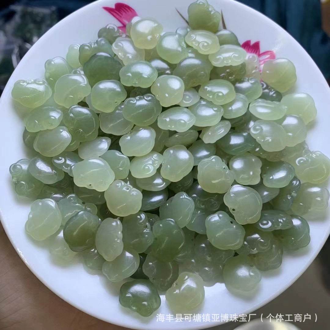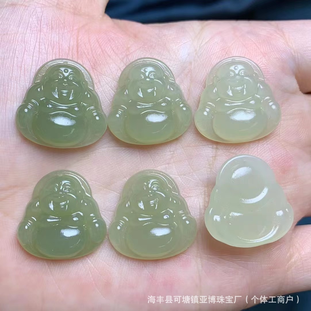 メーカー卸売り天然和田玉青海料笑仏ペンダント無裂無雑料細温潤diy各種用