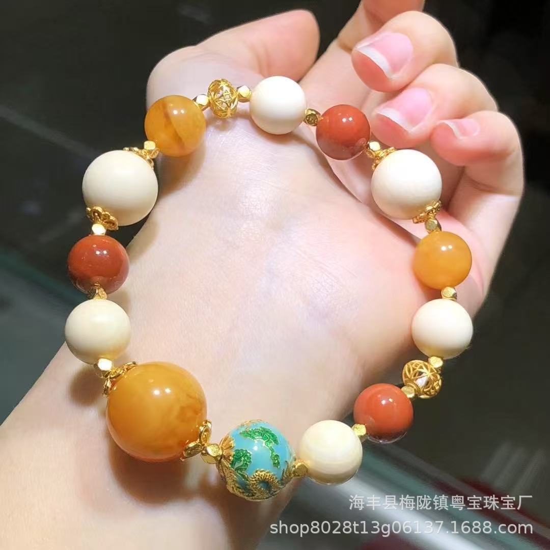 メーカー卸売りのオリジナルデザインの古いミツロウのマンモスの歯の南紅国風の新しい中国式の文は多宝の手のチェーンのブレスレットを遊びます。