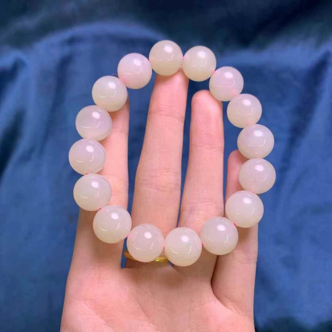 メーカー卸売天然Hetian Jade Qinghai古い素材レンコンパウダーブレスレット、ひび割れなし、不純物なし、細くて温かくしっとりとしたレンコンパウダー