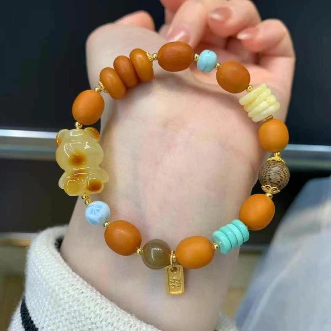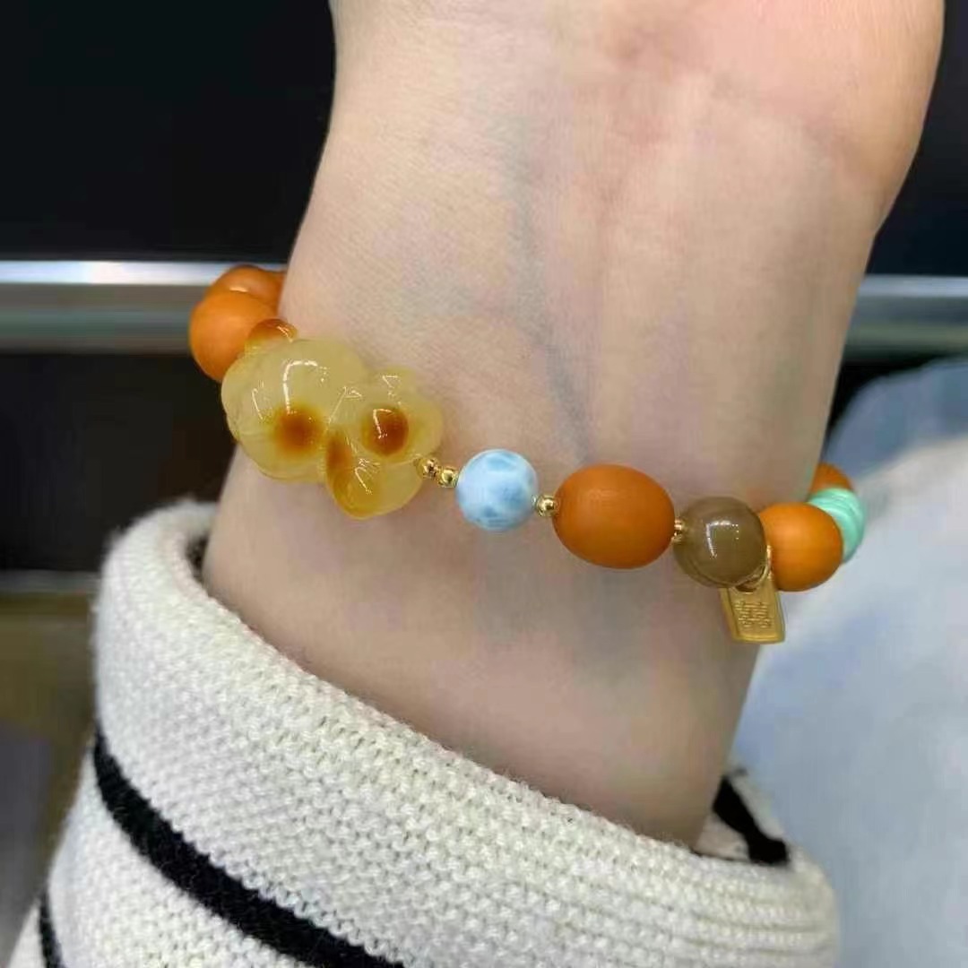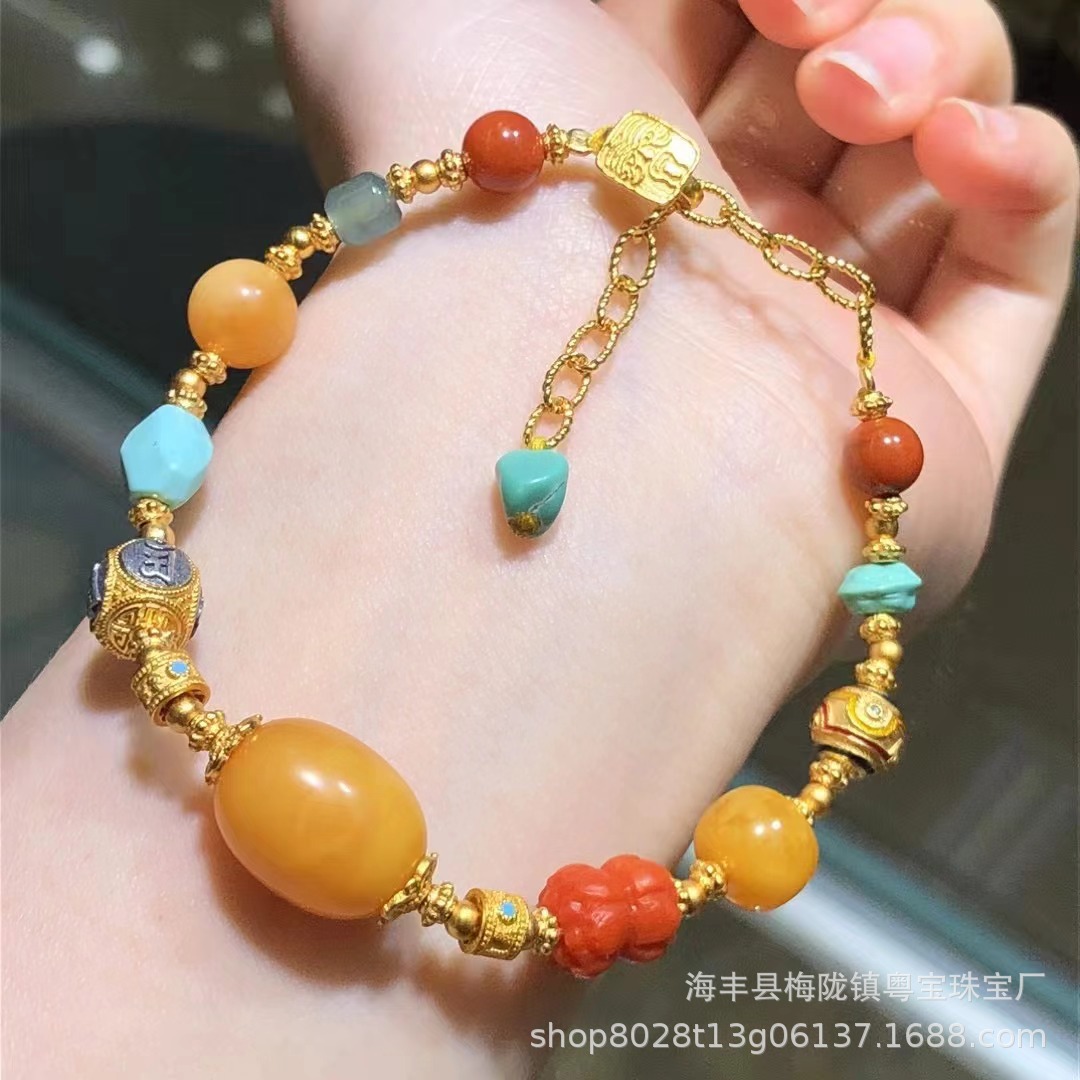 天然保真緑松石南紅蜜ろう多宝手串オリジナルデザイン新中国式美学国風ファッションブレスレット