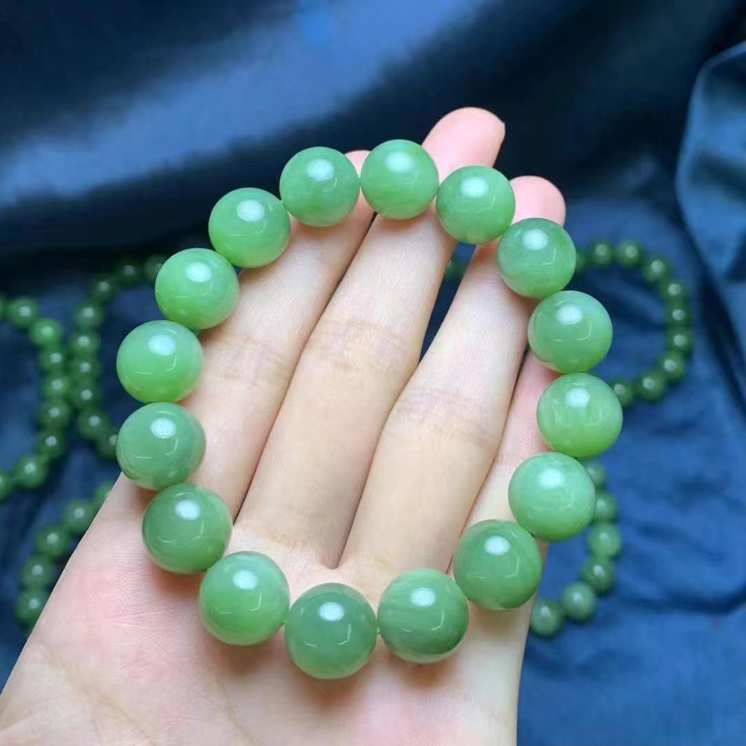 メーカー卸売りロシア材料和田碧玉約手串無黒点陽緑帯猫眼効果材料細温潤