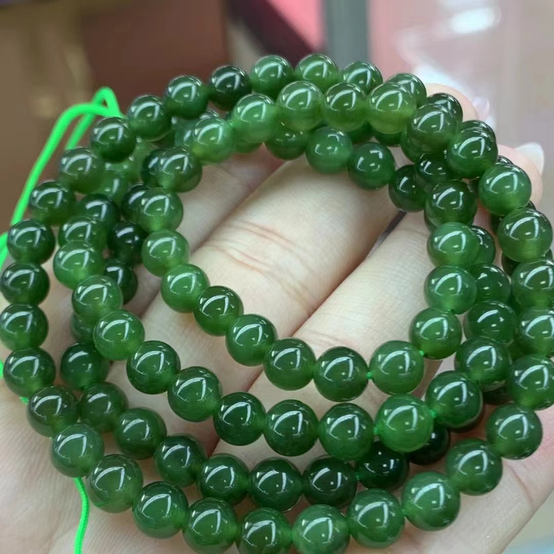 メーカー卸売り天然和田碧玉ホウレンソウ緑108個仏珠6mm玉手串鎖散珠配鎖