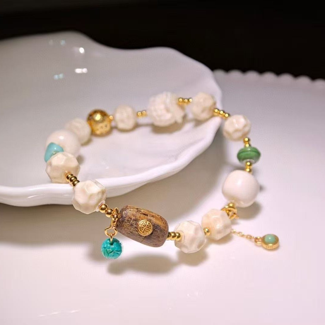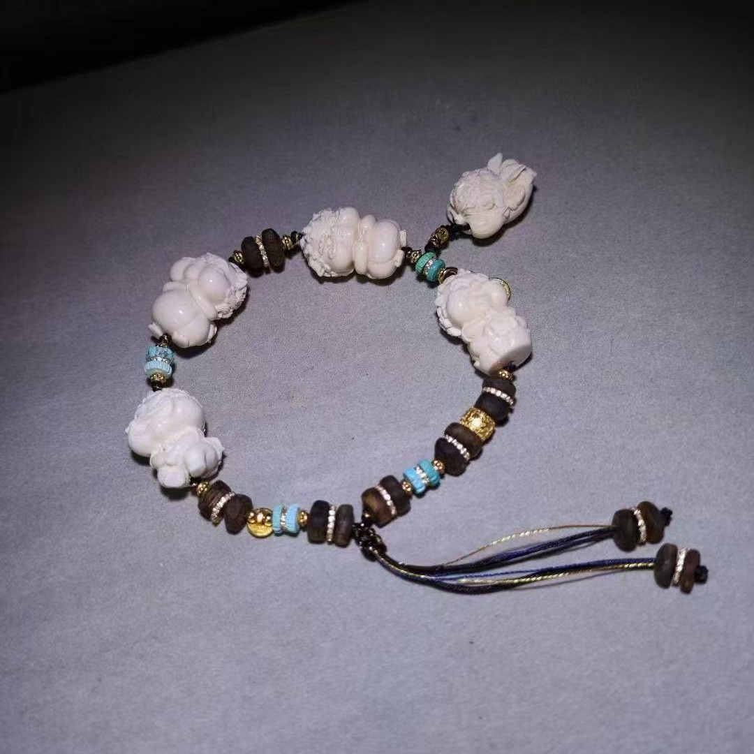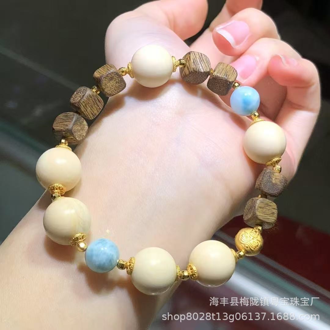 新型中国式レトロ国風マンモス歯沈香海紋石手串ブレスレットかわいいファッション百合少女