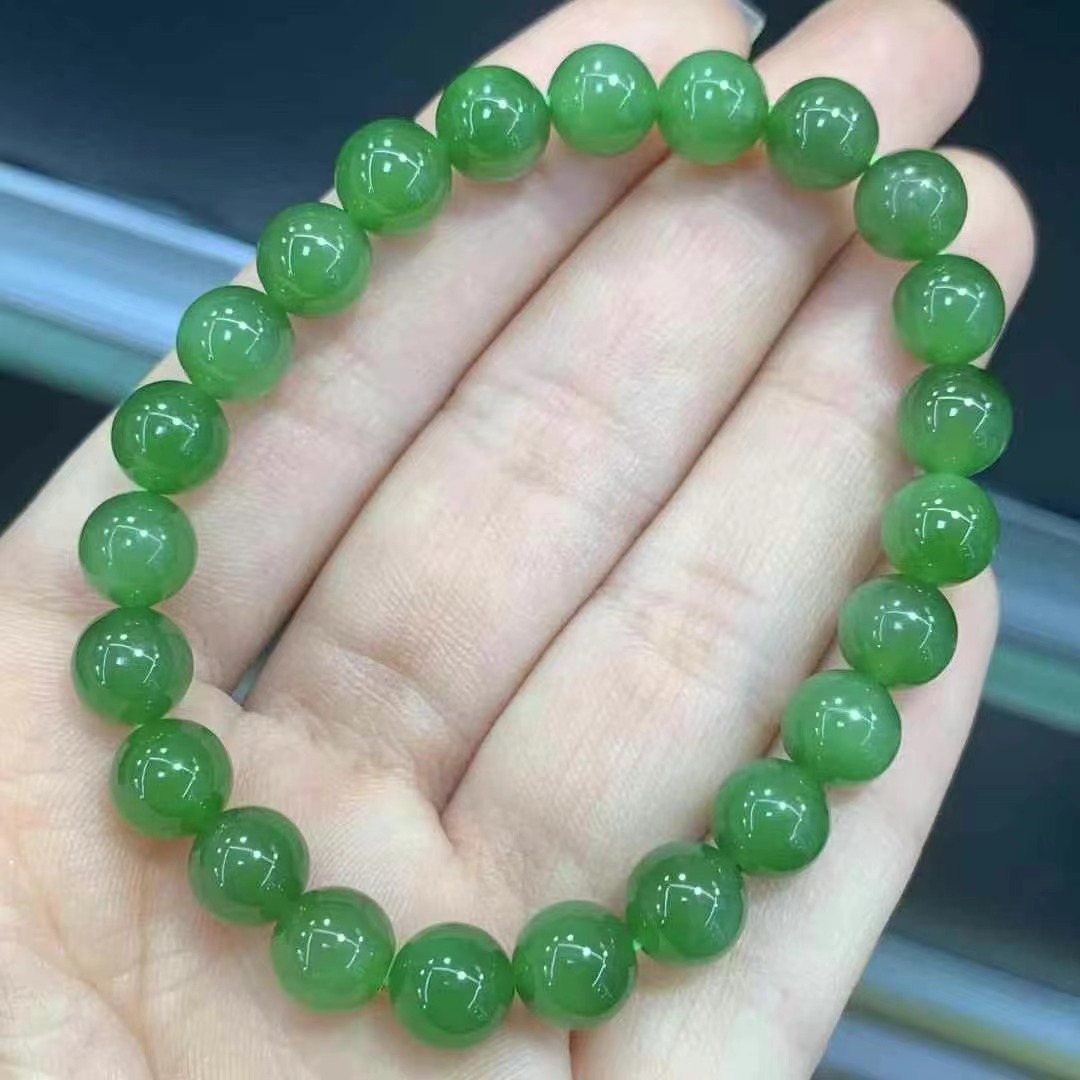 メーカー卸売り天然碧玉手串料質繊細無黒点氷氷緑水足8mm