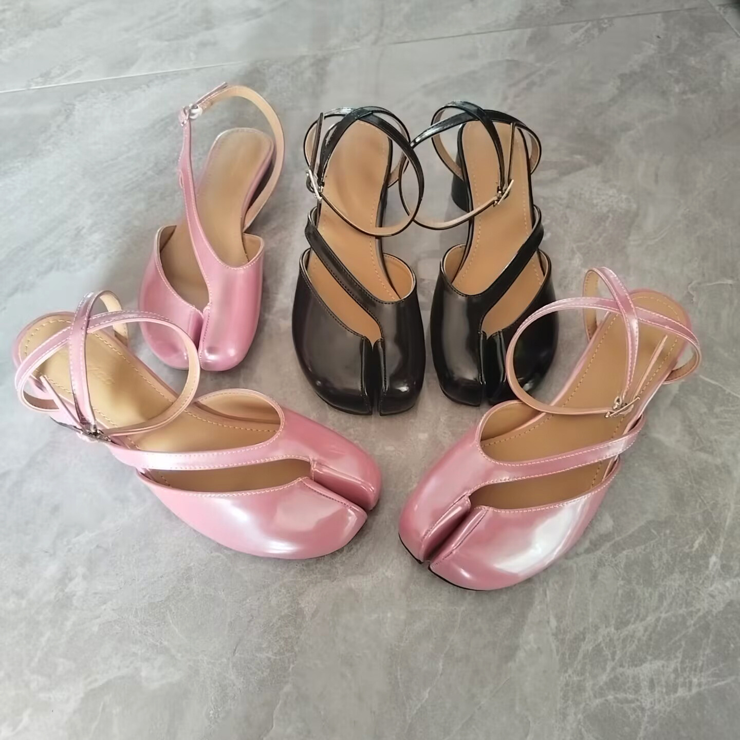 女性用ニッチラウンドヒールスプリットトゥシューズの既製バージョン2025春夏厚底トゥサンダルピッグフットミッドハイヒールシューズ