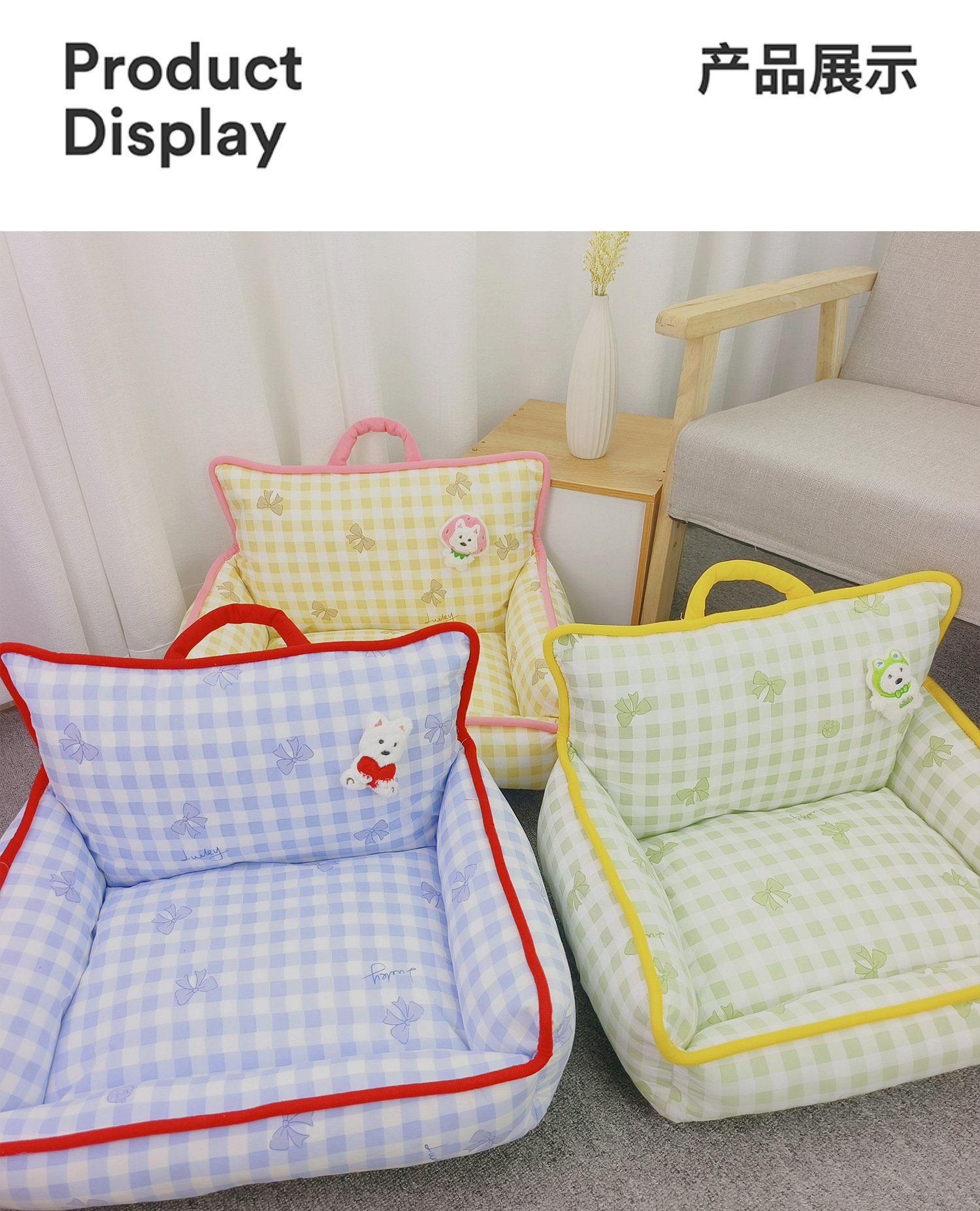 ブルーグリッドソファ,グリーングリッドソファ,黄色のグリッドソファ