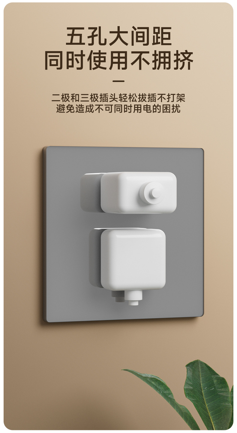 国際規格5穴コンセントパネル 埋め込み式86型壁スイッチ 1連5穴 2連ダブルコントロール 超薄型設計