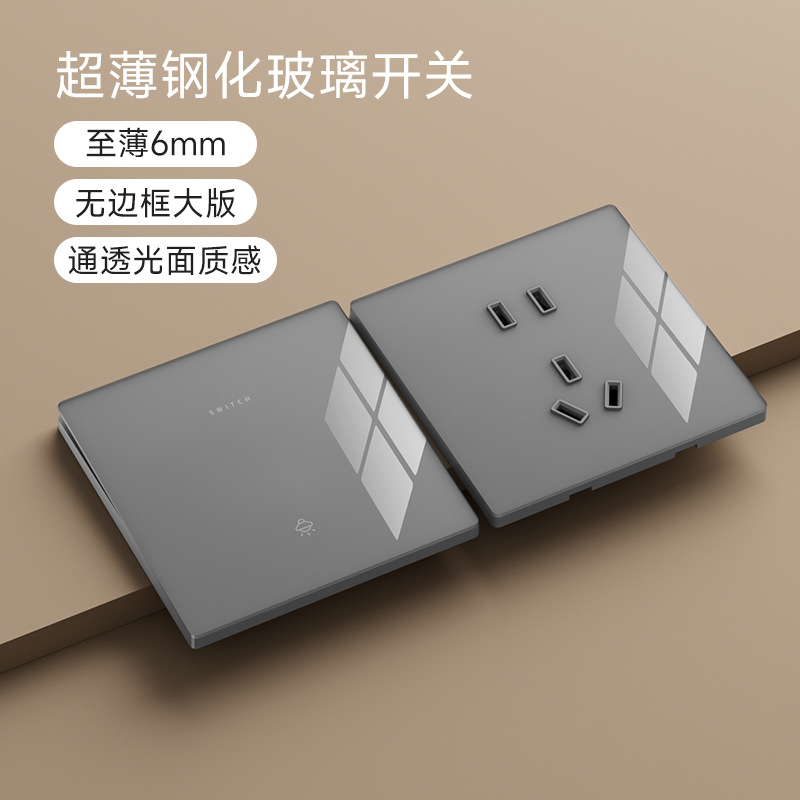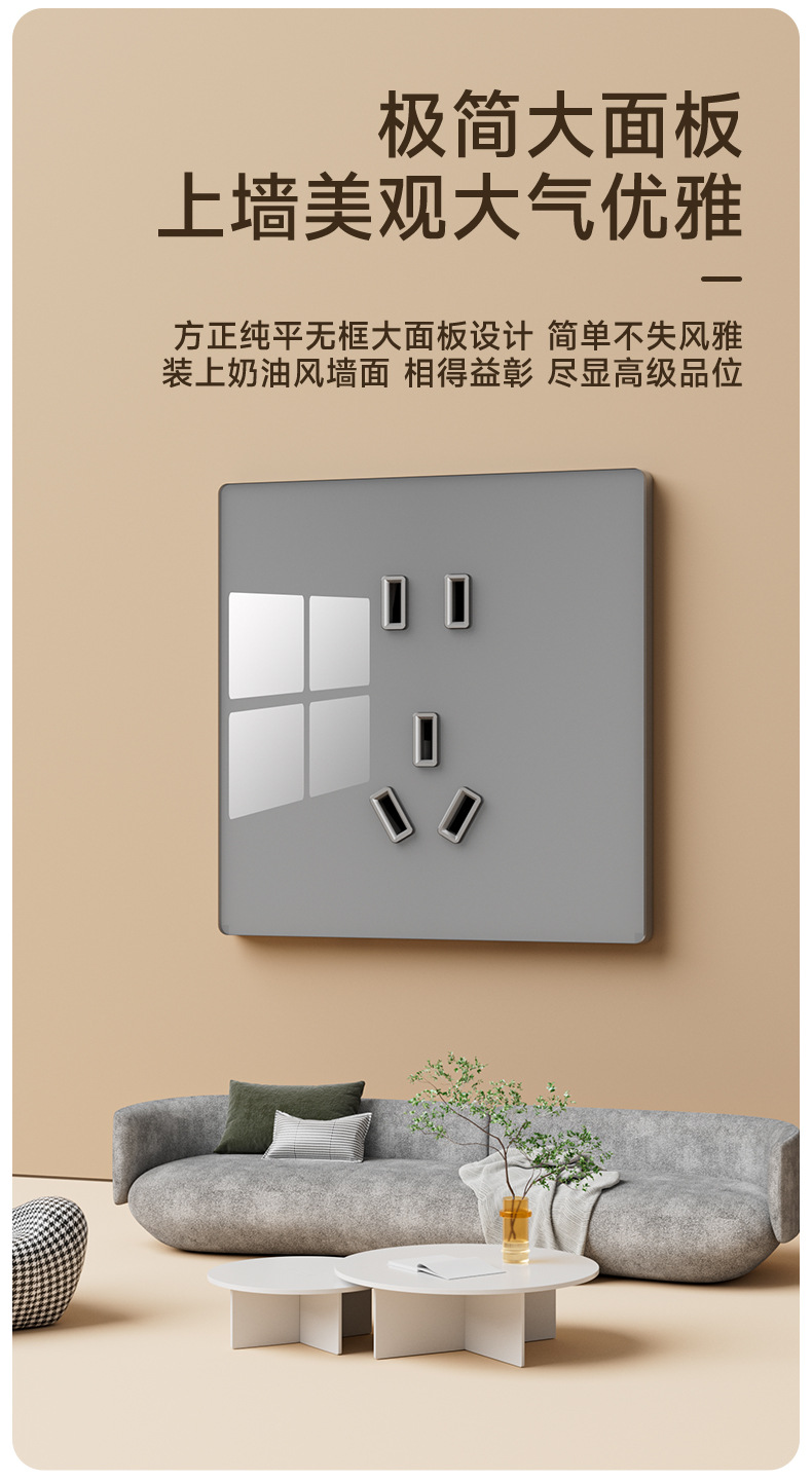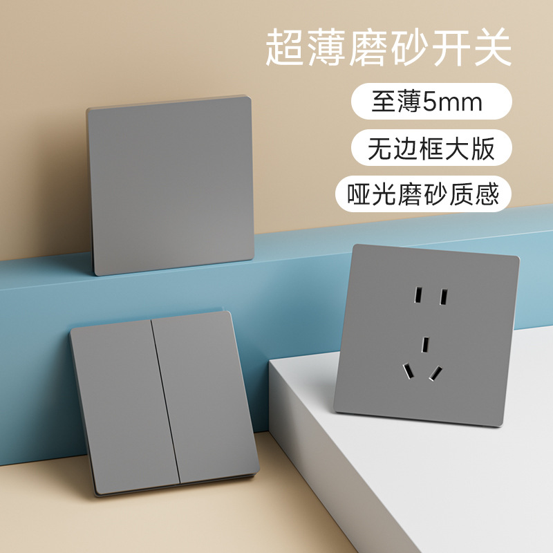国際電気技師5穴コンセントパネル家庭用暗装86型グレー超薄スイッチ一開10A五穴単双制御