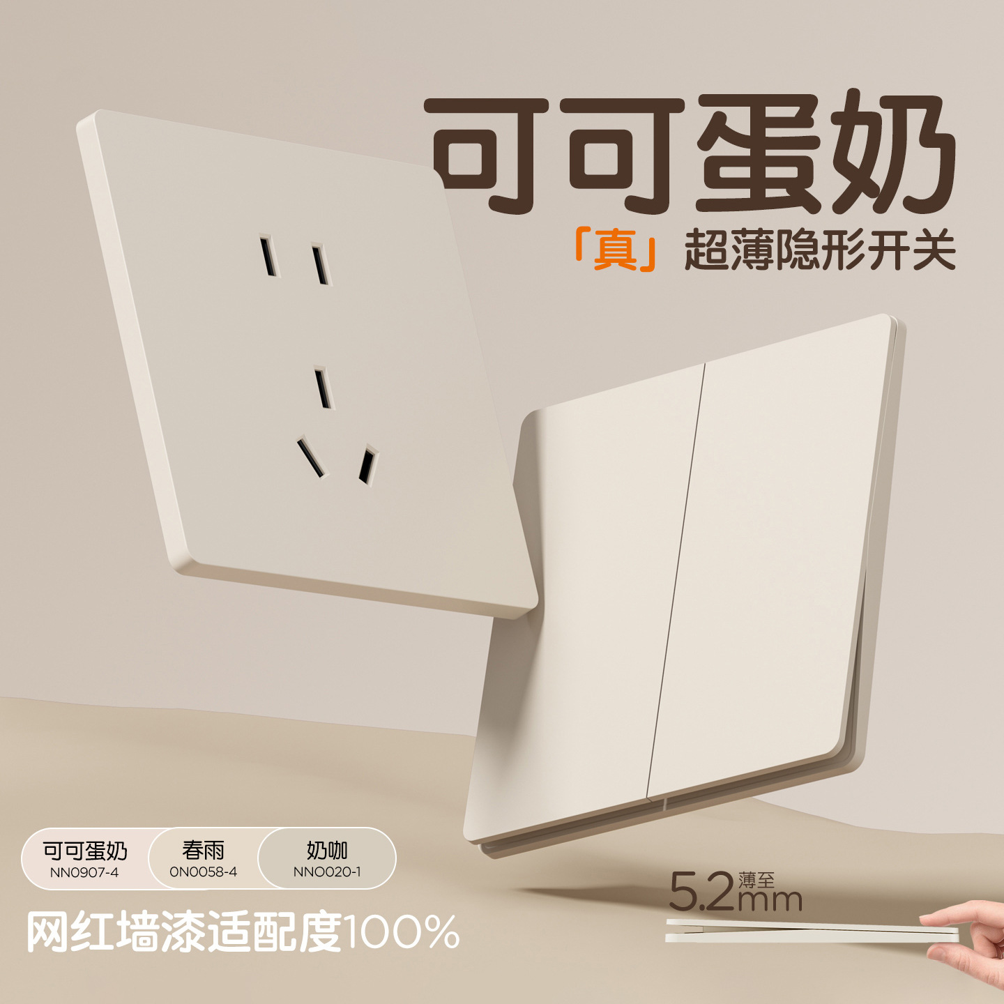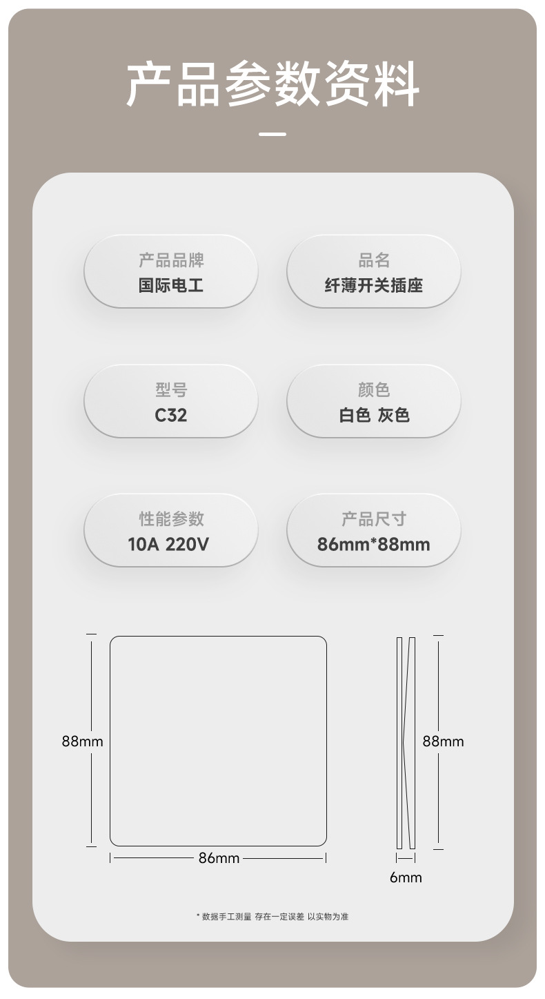 86型暗装可可蛋奶白超薄开关插座面板家用暗装五孔墙壁奶油风插座