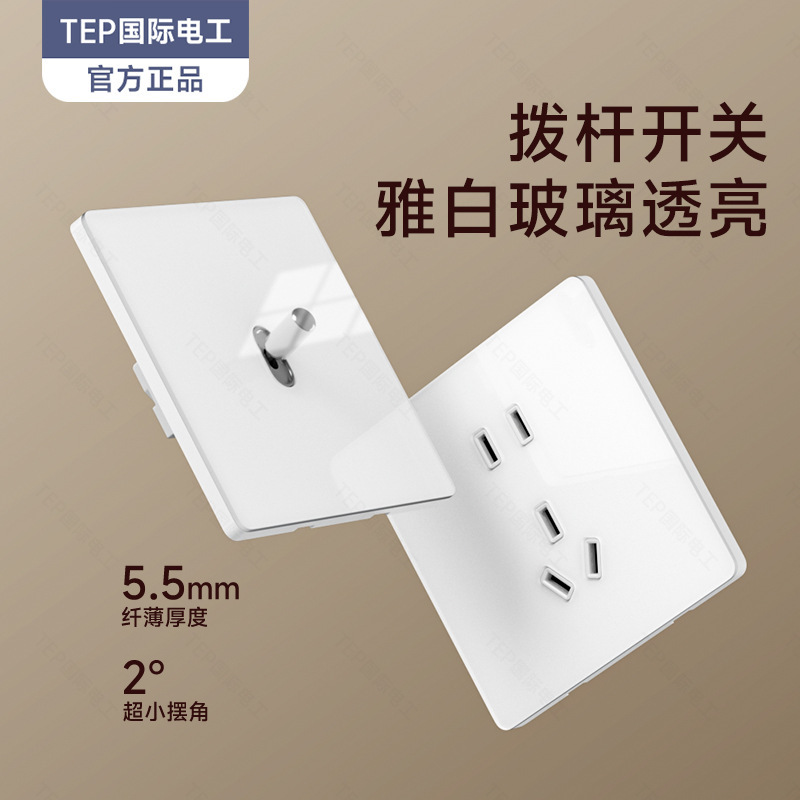 TEP 国際電気直角白ソケットパネル 86 タイプ隠蔽ダブルスイッチ家庭用 1 または 2 ダブルコントロール 5 穴