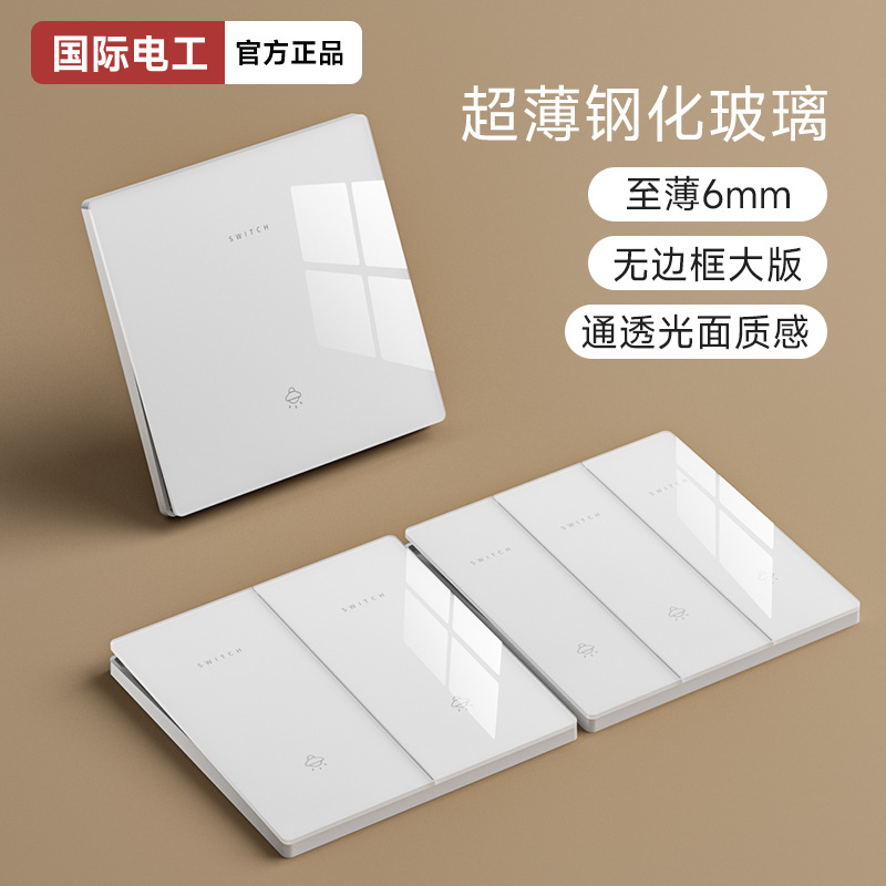 インターナショナルエレクトリック 5穴ソケットパネル 超薄型86型強化ガラス 1スイッチソケット クリーム風 2オープン ダブルコントロール