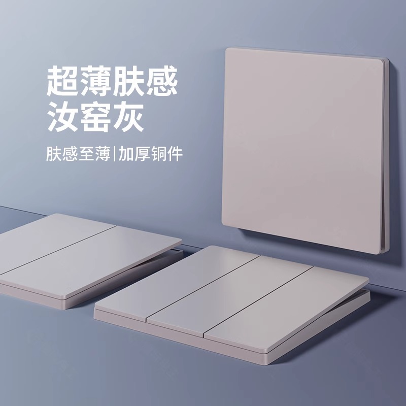 TEP国際電気工S11汝窯灰スイッチソケットパネル超薄86型暗装家庭用一開五穴ダブルコントロール