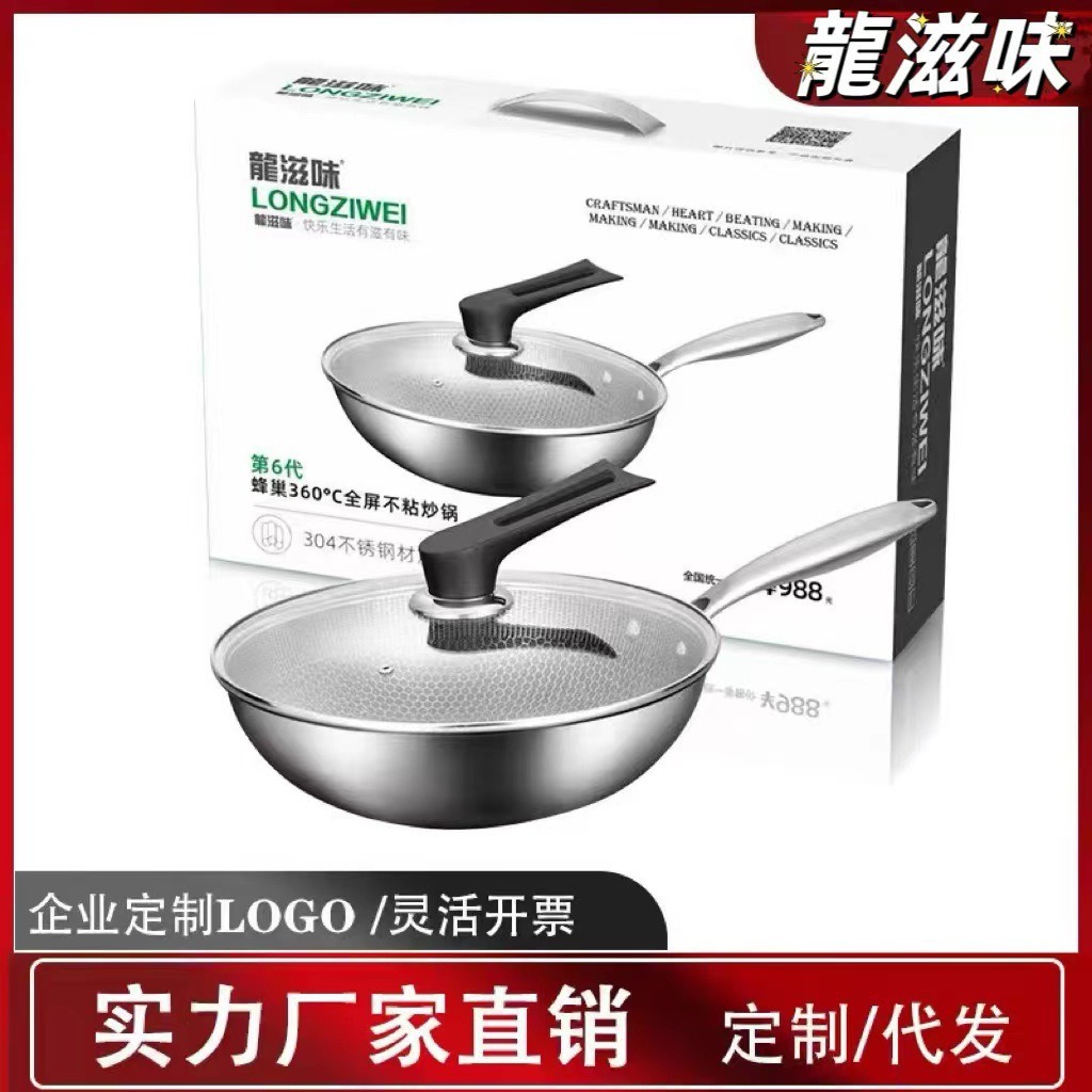 龍滋味炒め鍋ハニカム炒め鍋食品級304ステンレス炒め鍋家庭用無コーティング鍋ギフト鍋