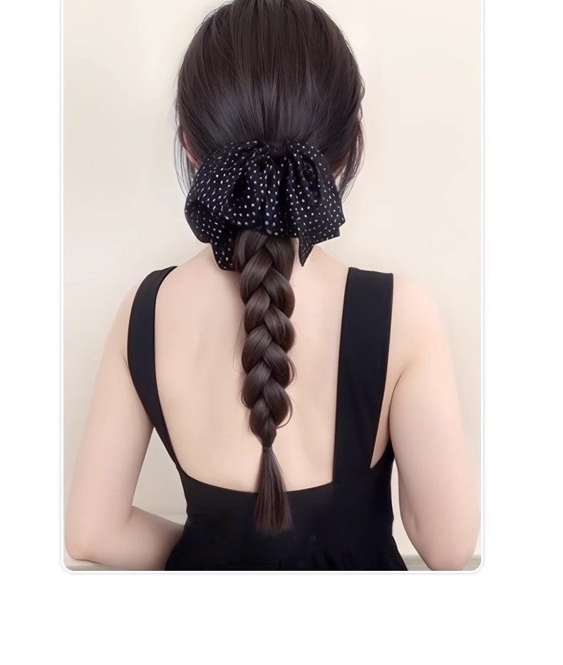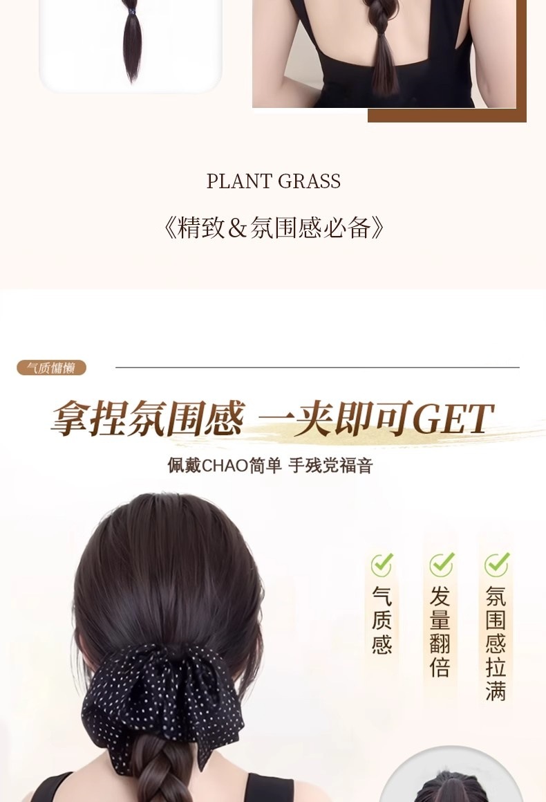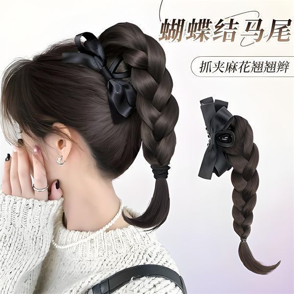 ウィッグブレード 女性用 ナチュラルな人工毛 ゆったりとした麻ひも編み込み バンスクリップ付き 水玉模様のリボン 新しい中国風ウィッグ ポニーテール