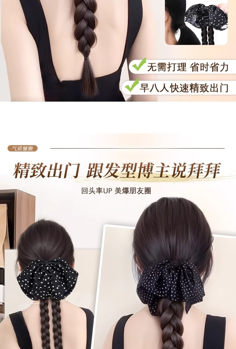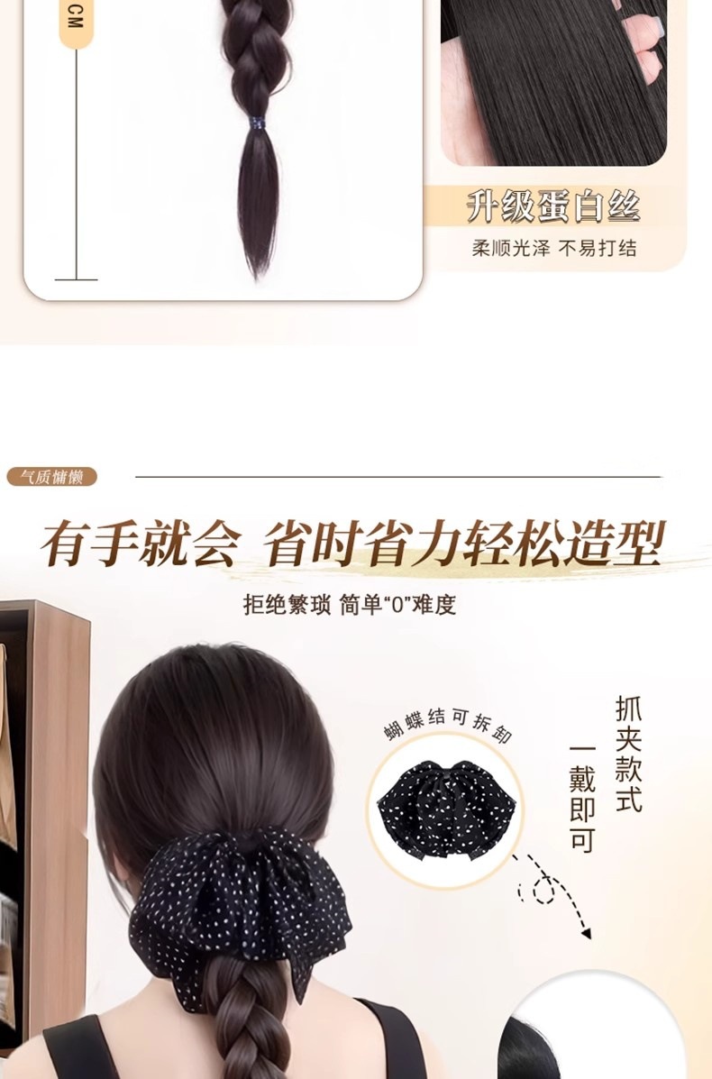 かつらは蝶結びの竜のひげの団子の頭をつかんで2025新型の馬尾の半分は髪を刺して短い髪の過渡期のかつらのつぼみを挟みます。