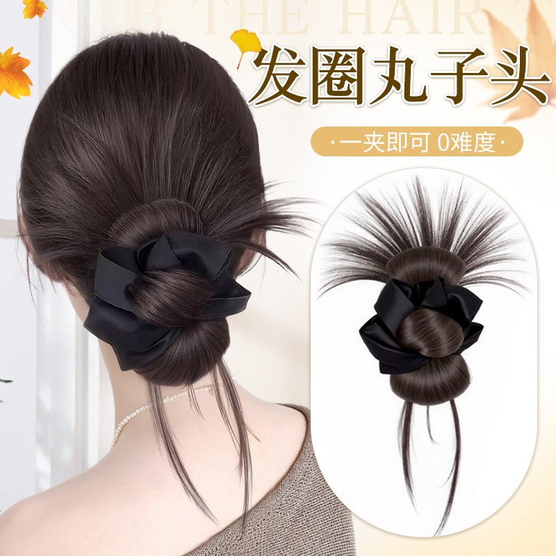 丸子头假发抓夹黑发圈鸡毛花苞头氛围感盘发自然蓬松低扎假发包