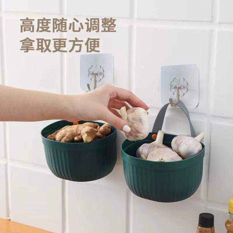 キッチン収納バスケット ジンジャーガーリックバスケット ブルー収納バスケット 吊り下げバスケット ジンジャーガーリックヘッド収納 壁掛け収納ボックス