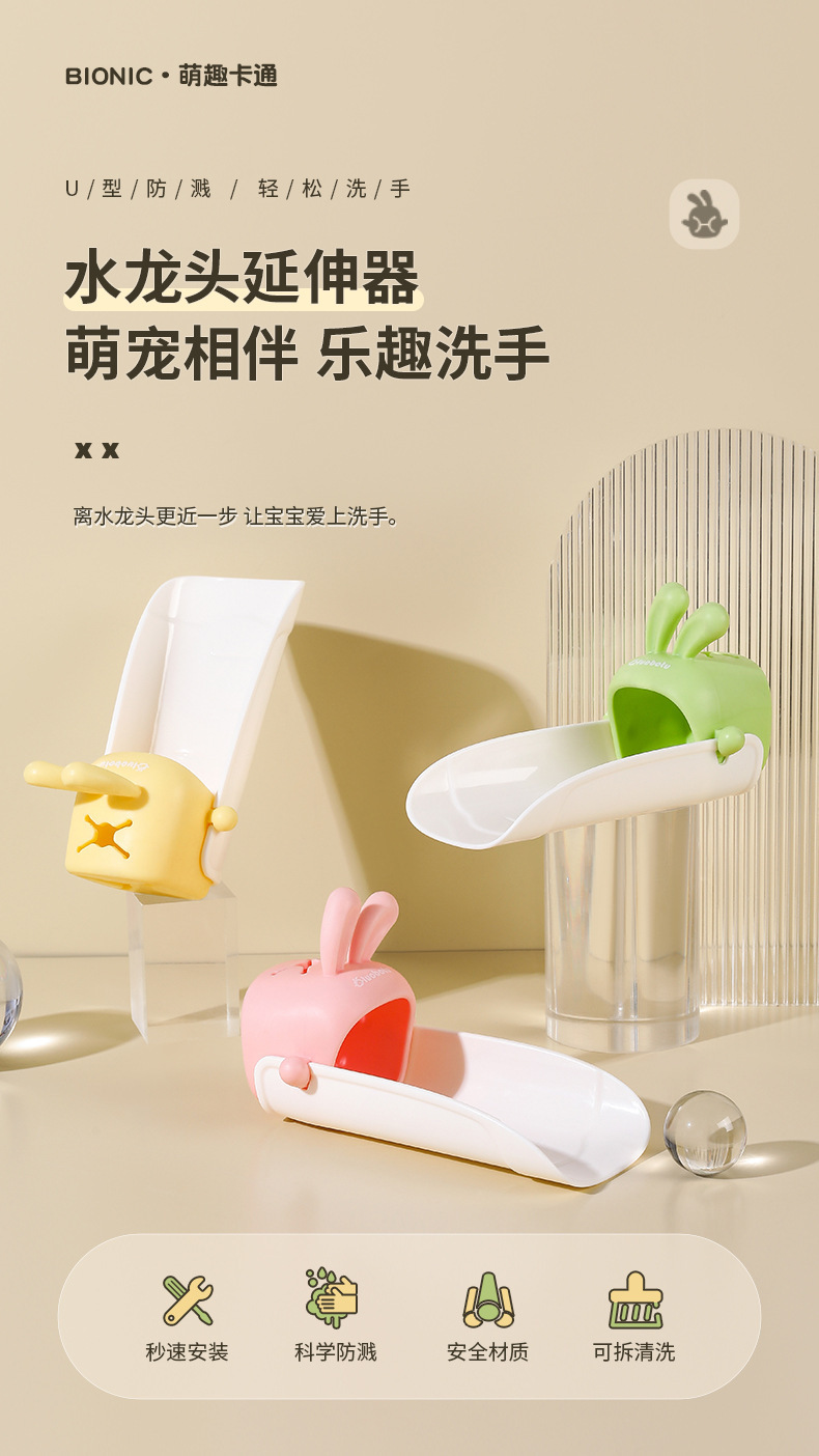 卡通儿童兔子水龙头延伸器宝宝洗手神器家用卫生间厨房水池防溅水