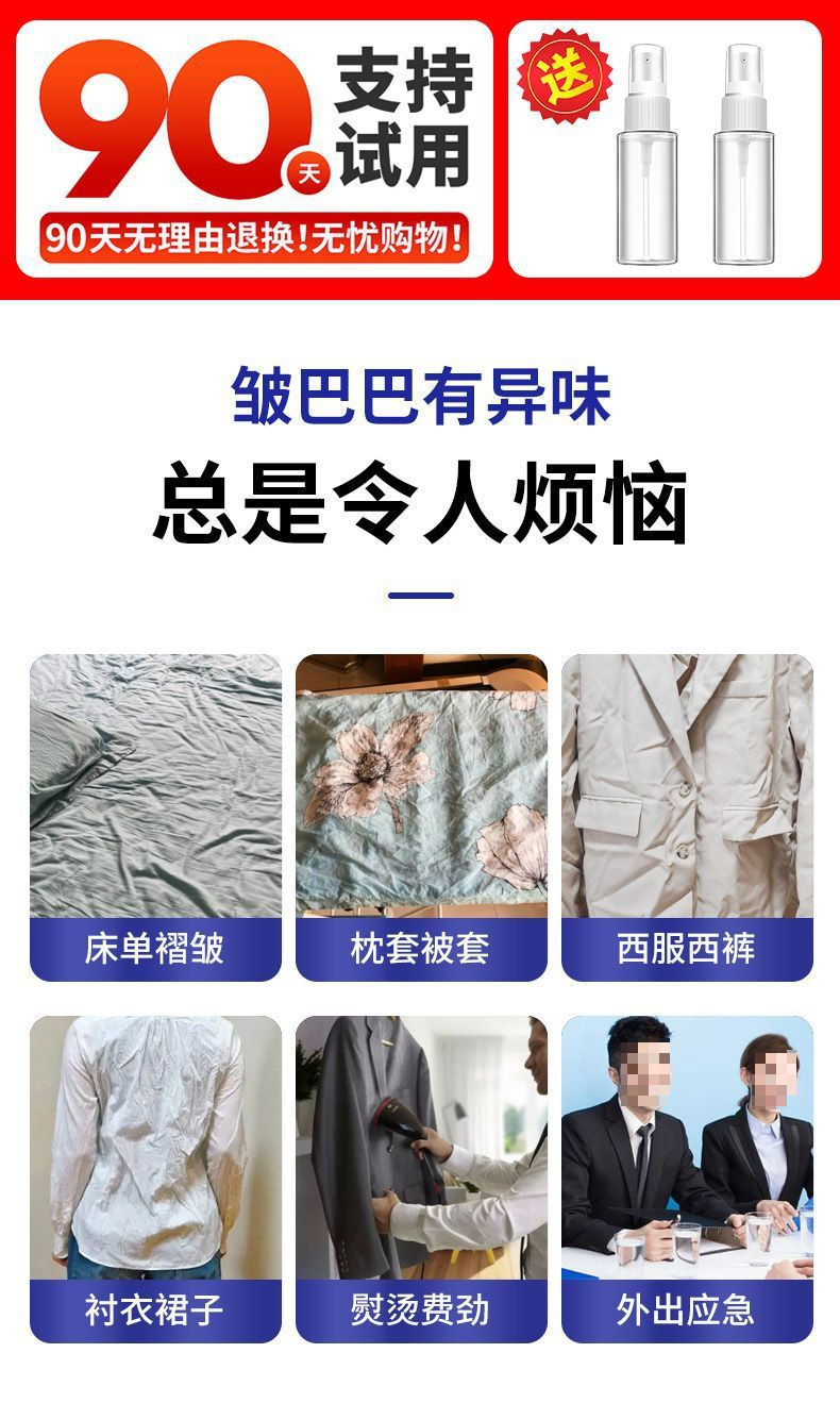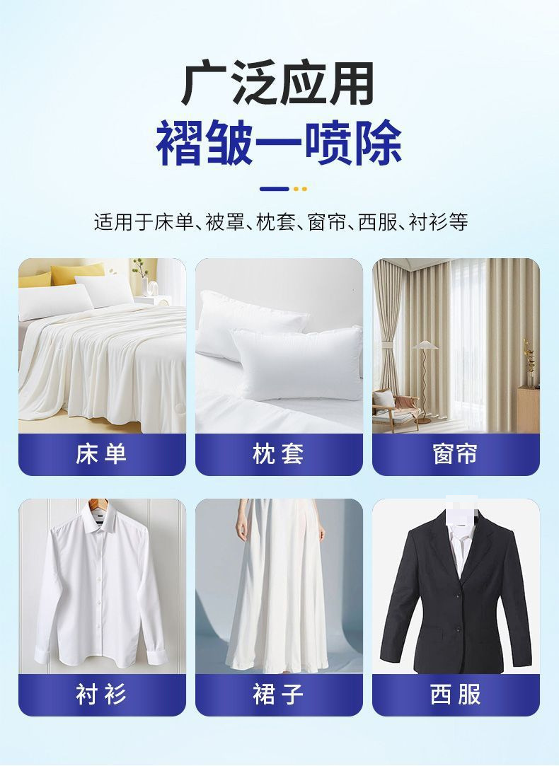 ベッドシーツのしわ取り剤、衣類のしわ取りスプレー、アイロン不要、アイロン不要の衣類のしわ取り、綿と麻のシャツ、カーテンのテスト、非売品