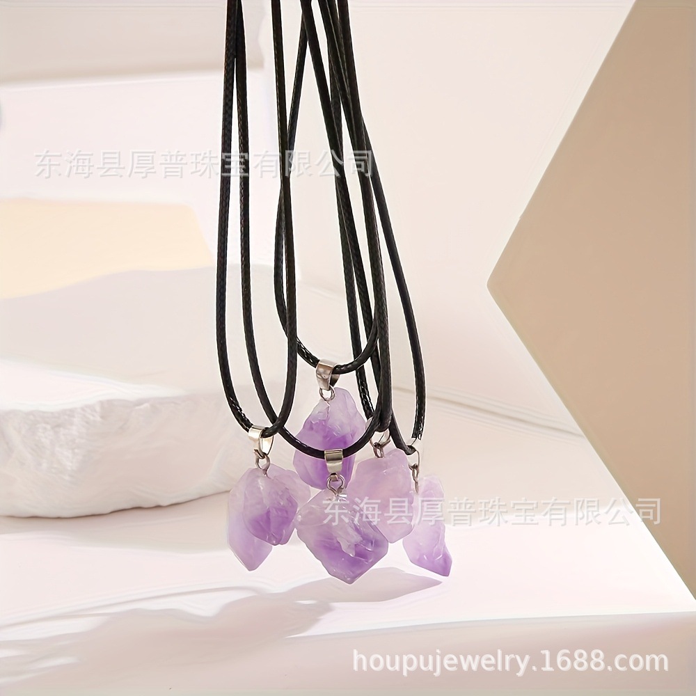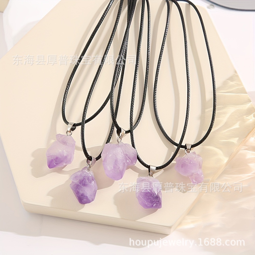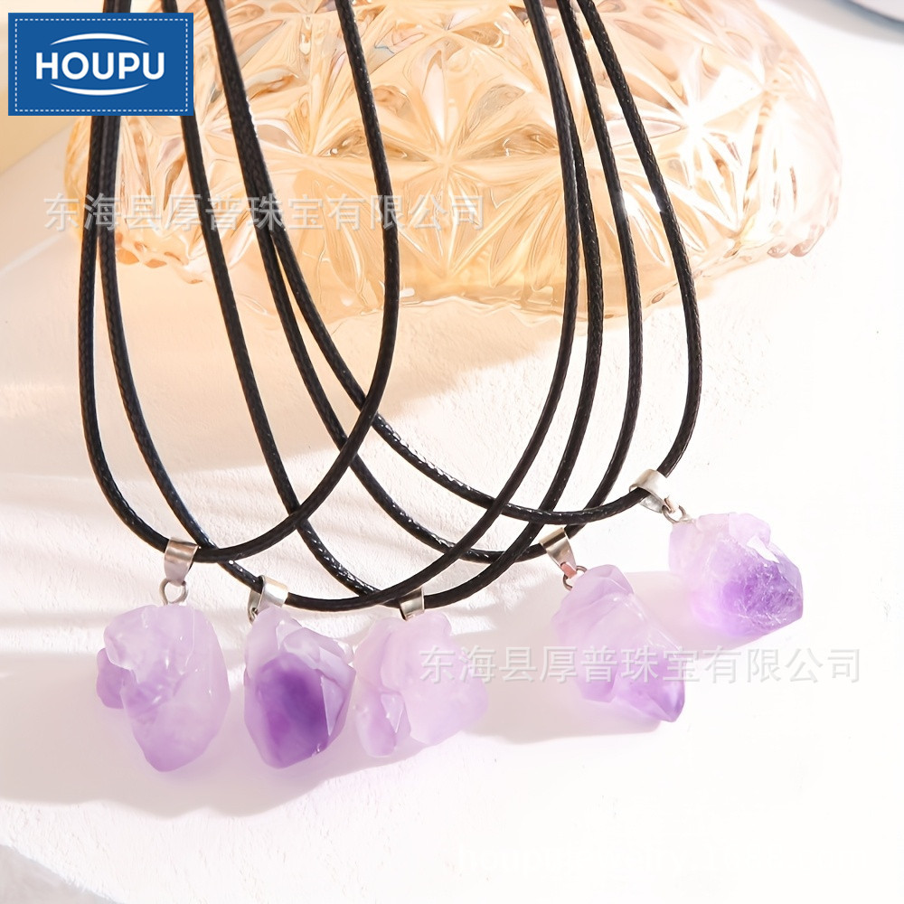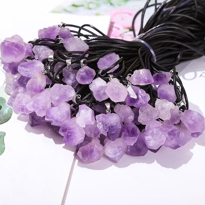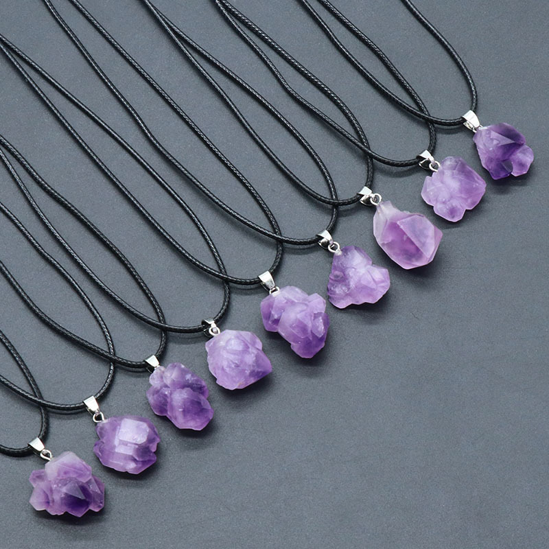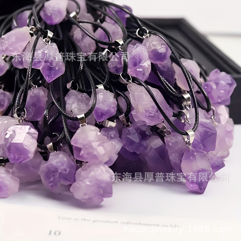 天然アメジストクラスターペンダント原石レザーロープネックレスファッショナブルな人気の誕生日プレゼント原石ペンダントペンダントパープル