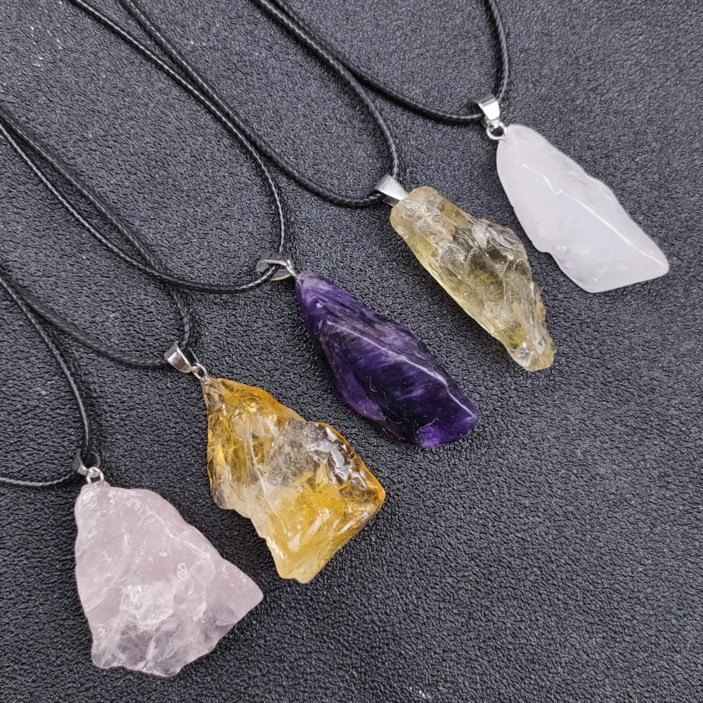 天然紫水晶黄水晶彩蛍粉水晶不規則ペンダント原石ネックレスの美しいアクセサリーは粗暴です。