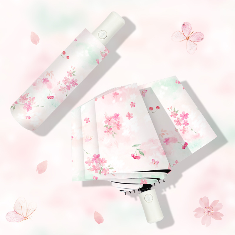 全自動傘日焼け止め紫外線防止日傘日傘折り畳み傘小清新黒ゴム晴れ雨両用傘