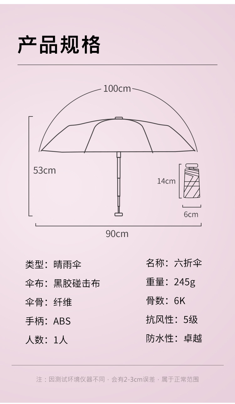 晴雨伞折叠超轻小扁六折伞防晒遮阳太阳伞防紫外线mini口袋伞