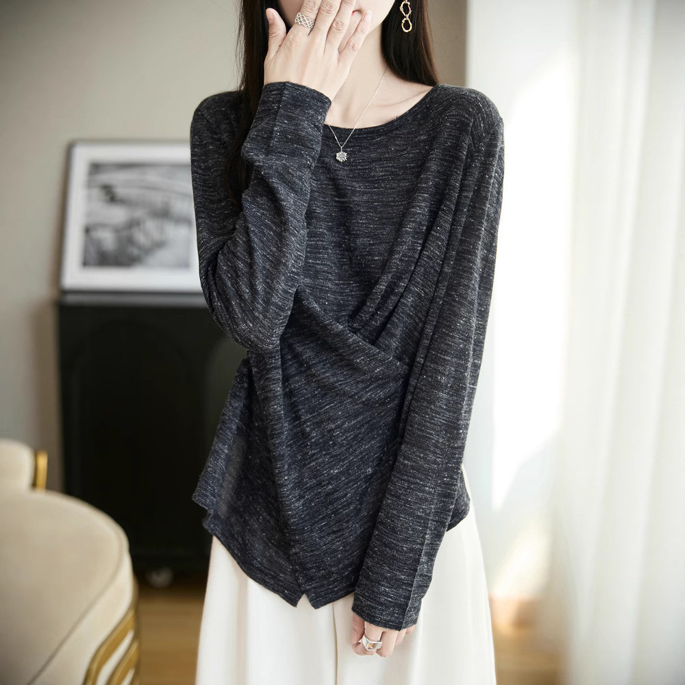 交叉领设计感舒适彩麻针织衫女薄款休闲百搭长袖打底上衣毛衫早秋