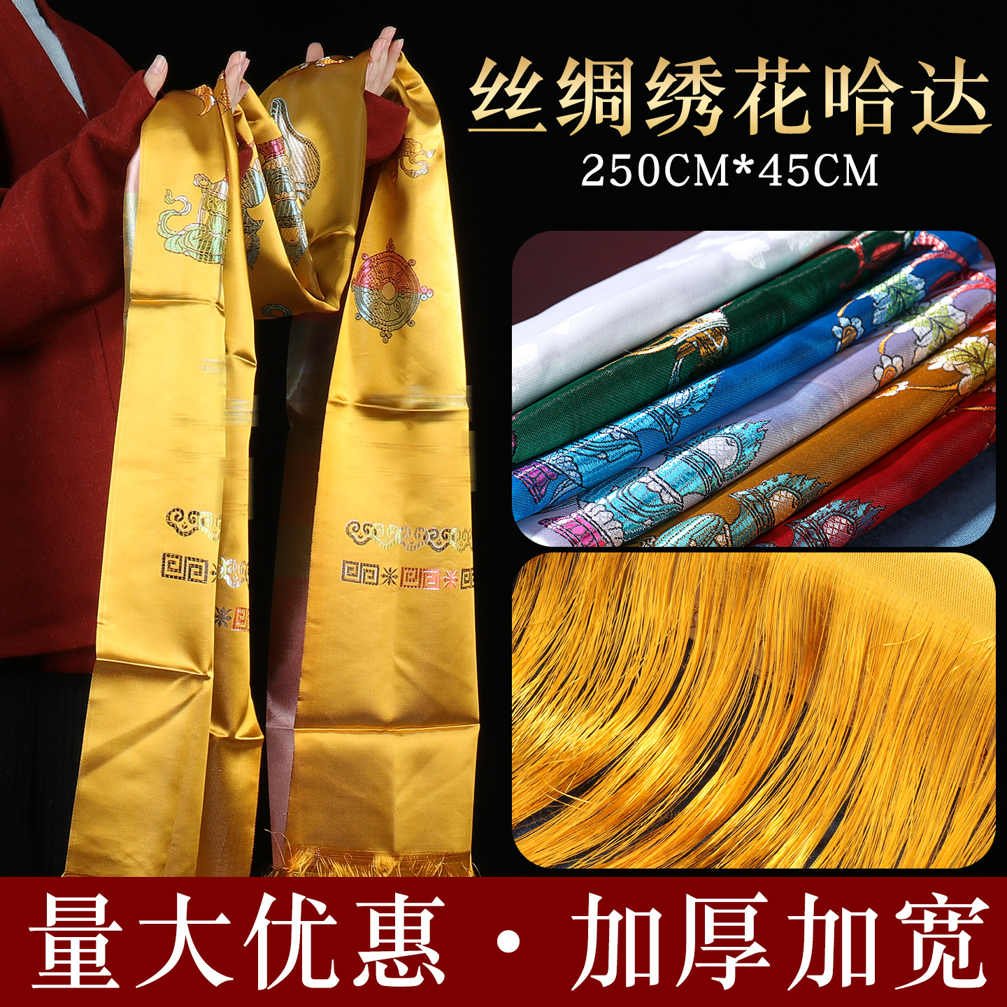 哈达藏族饰品加厚丝绸绣花八吉祥装饰节庆用品长辈礼品2.5m*45cm