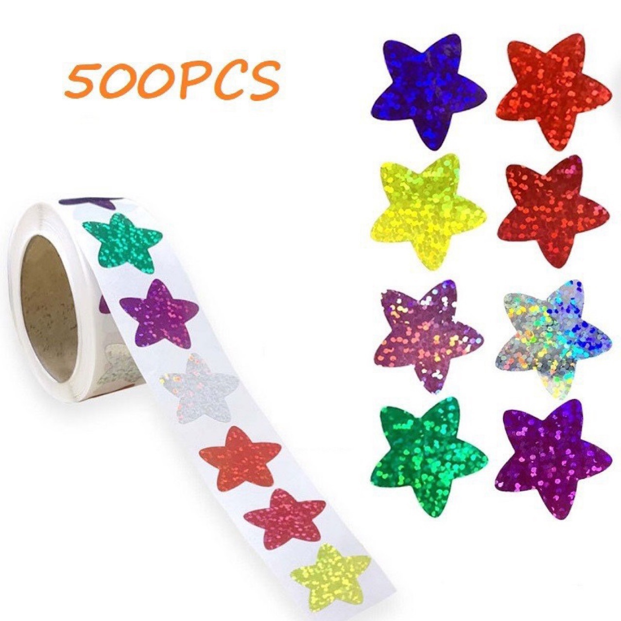 500枚/巻レーザー包装シール星奨励グラフ装飾シリーズステッカーラベル