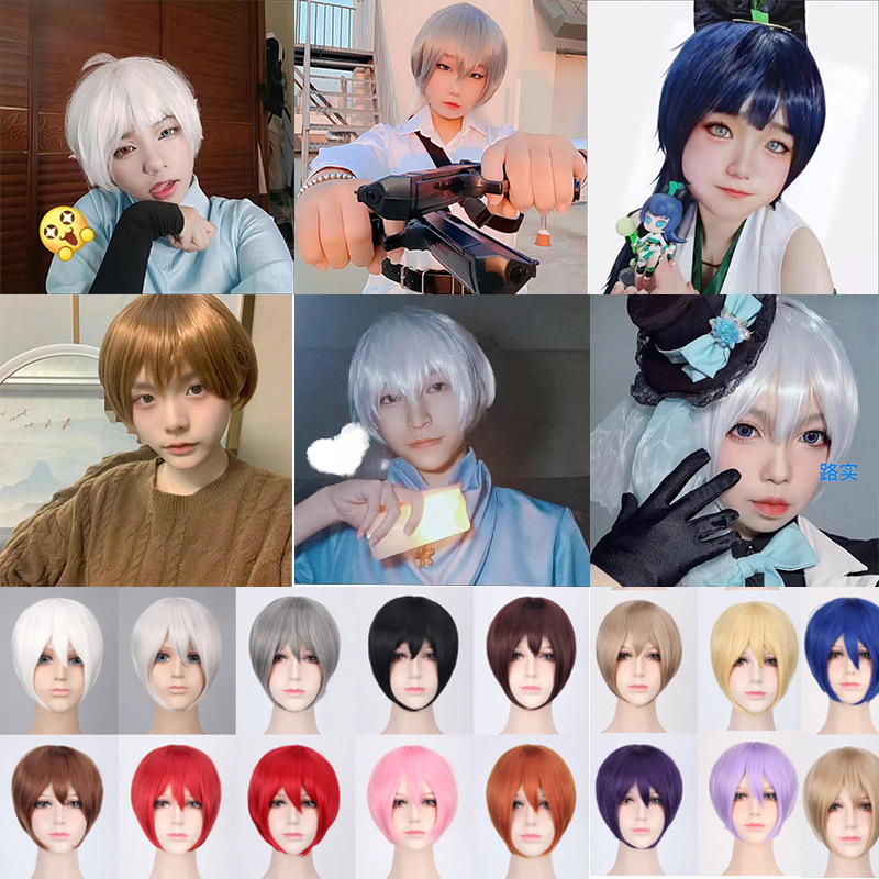 コスプレウィッグマルチカラーユニバーサルフェイスシェイプショートヘアMSN黒と白のショートヘアボボヘッドギア工場直販ウィッグ