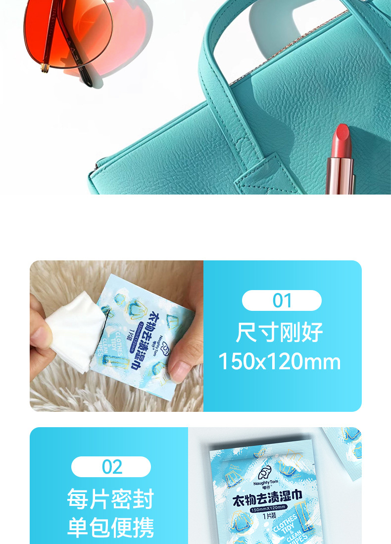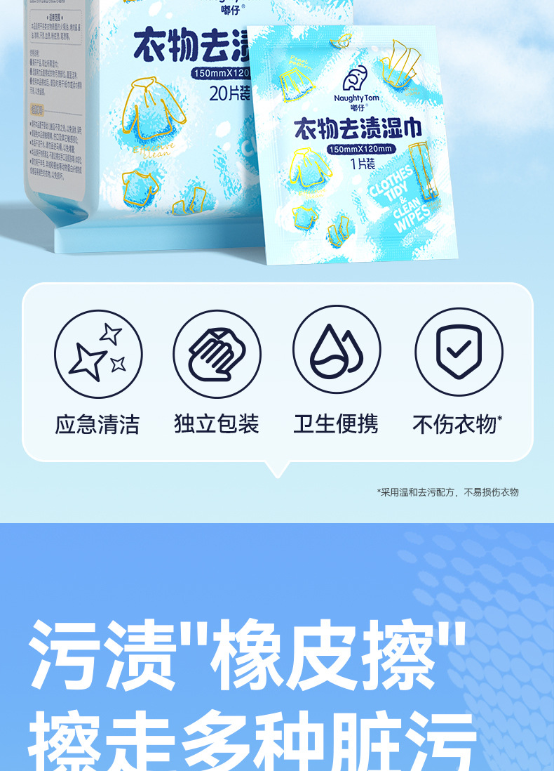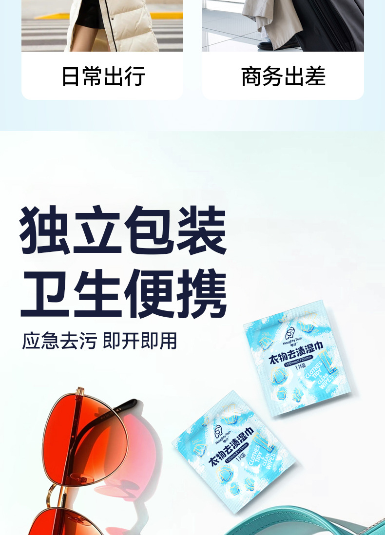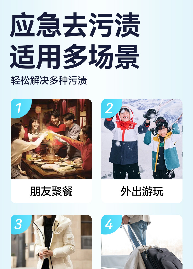 衣物去渍湿巾羽绒服湿巾便携应急免水洗去污免洗小白鞋羽绒服湿巾