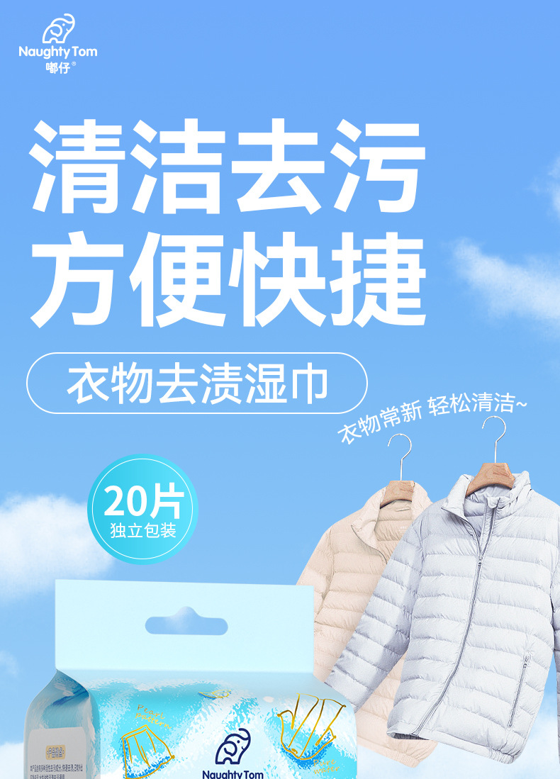 羽绒服清洁湿巾免洗清洁湿巾去油小白鞋去污湿巾便携衣物去渍湿巾